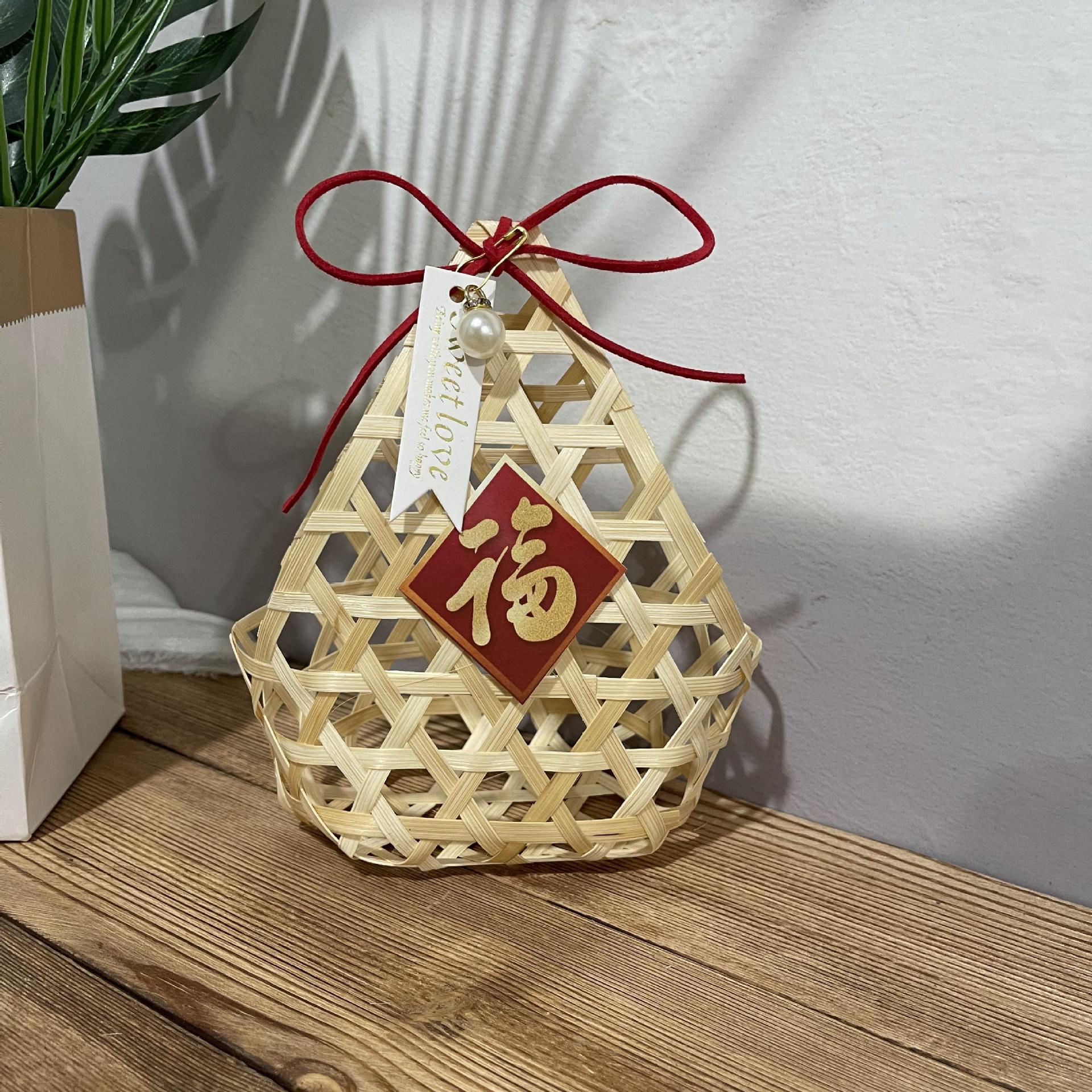 手編みバスケットお土産DIY卵バスケットお菓子包装竹編み六角形中空竹バスケット一件代発