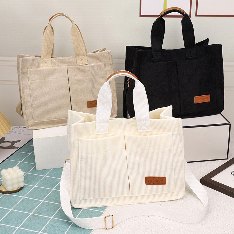 卸売ハンドバッグ、コーデュロイ通勤ショルダーバッグ、大容量トレンドワイドショルダーストラップクロスボディバッグ、トレンド通勤