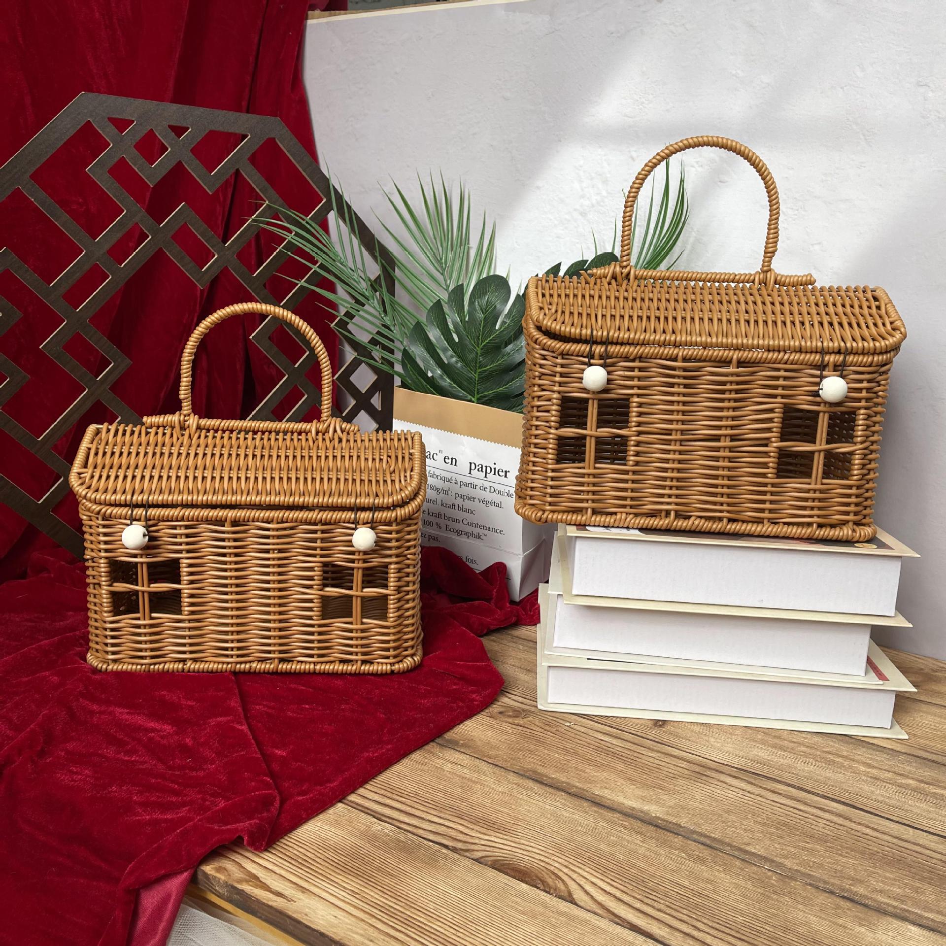 レトロな籐箱 結婚式の記念品包装 籐箱 クリスマス収納 模造籐製ハンドバッグ 籐製ギフトボックス