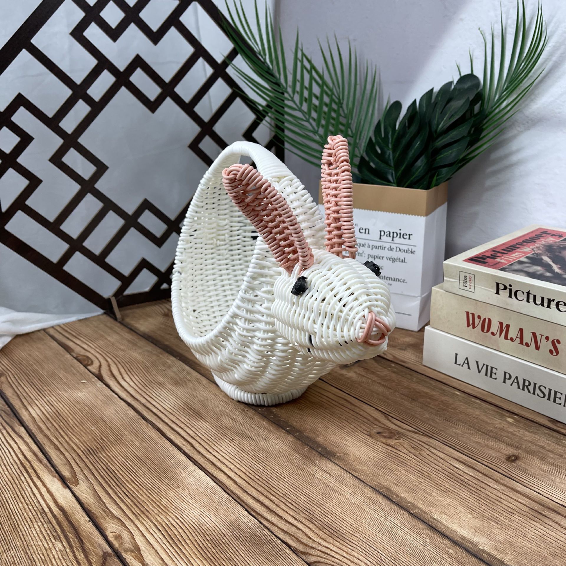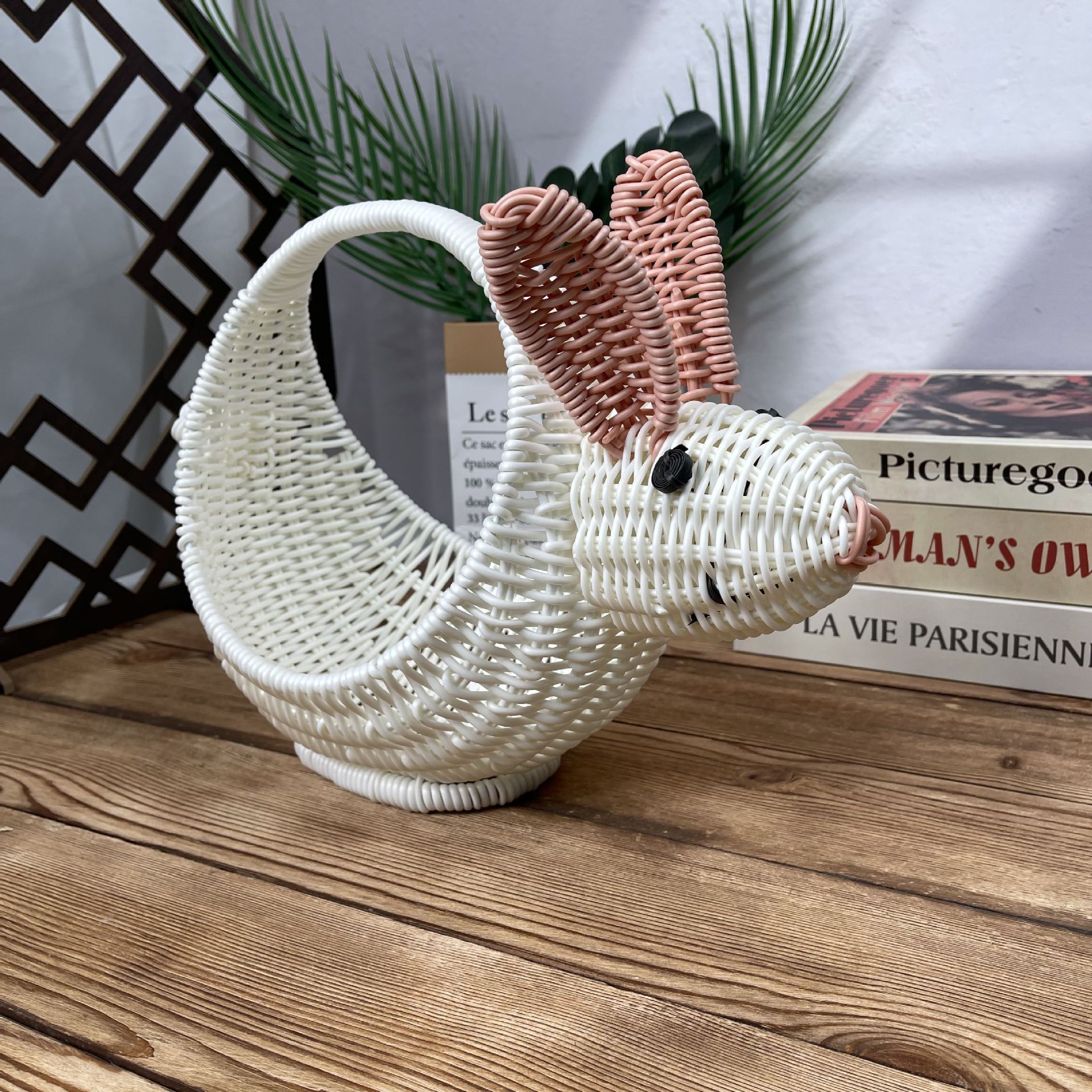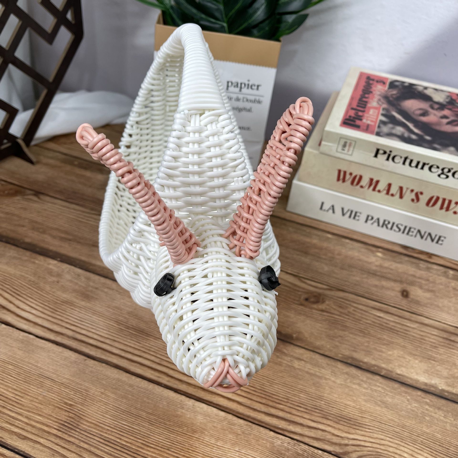 手作り編み籐バスケットホテル竹編みバスケット籐編みウサギ籐編み動物バスケットクリエイティブ収納