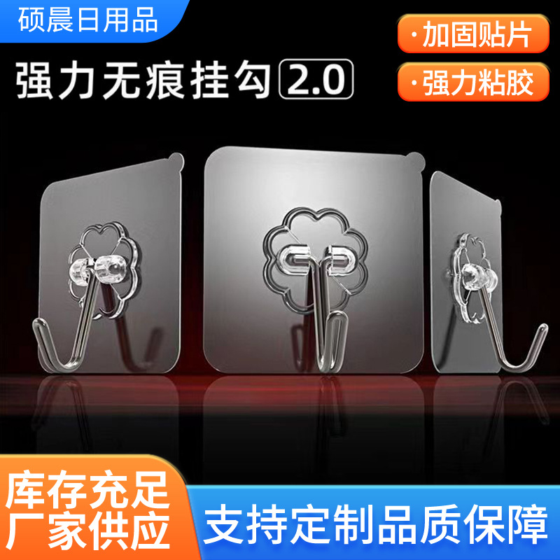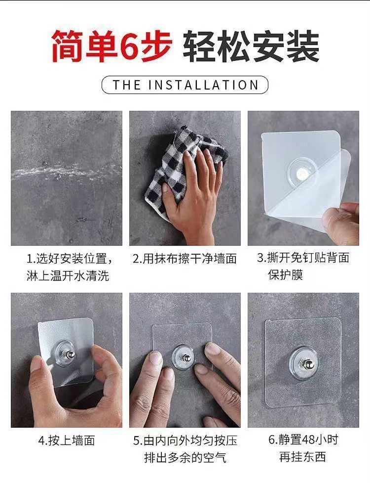 穴なしフック超強力自己接着壁式壁に傷なしキッチントイレ浴室共通透明フック