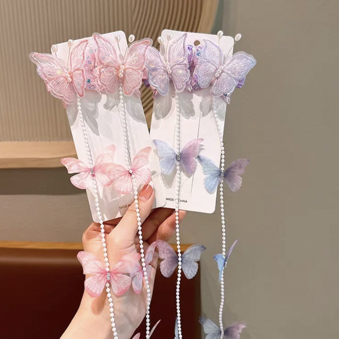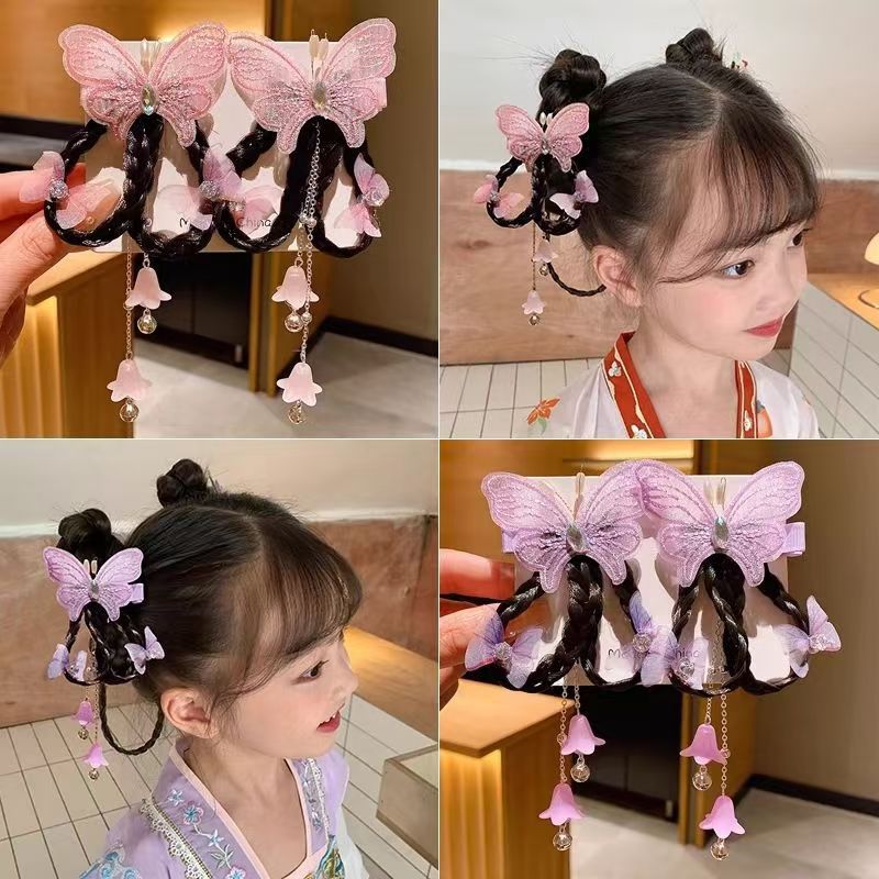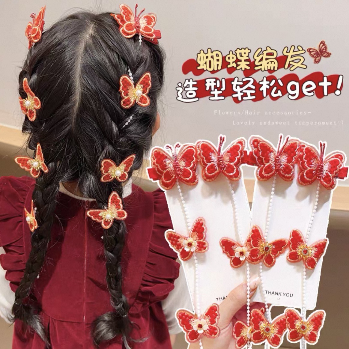 新年发饰蝴蝶编发链发夹儿童喜庆珍珠流苏发卡女童拜年甜美对夹