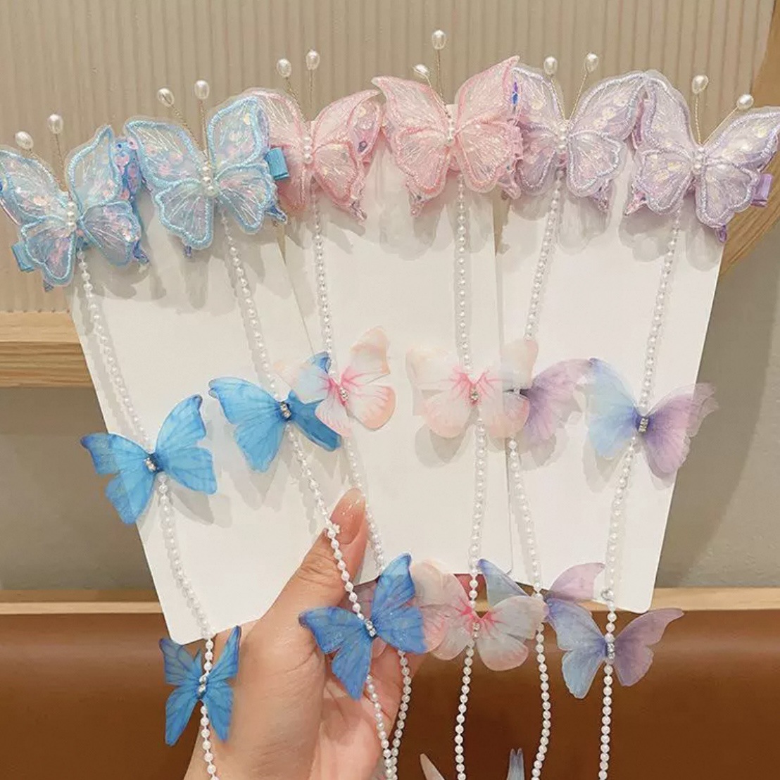 爆発的な蝶の髪飾り子供の王女は春の金仙気蝶真珠の髪飾りを編む