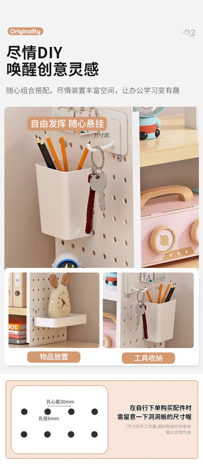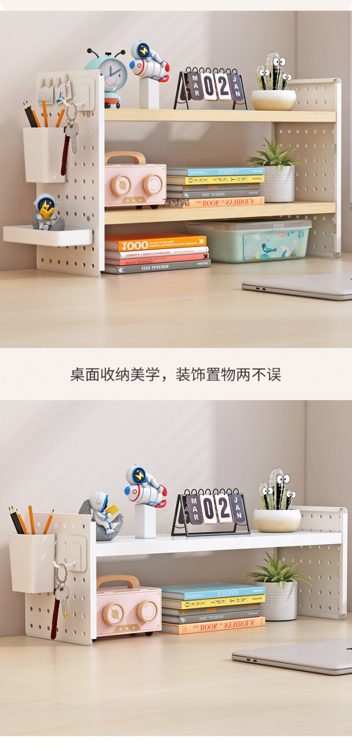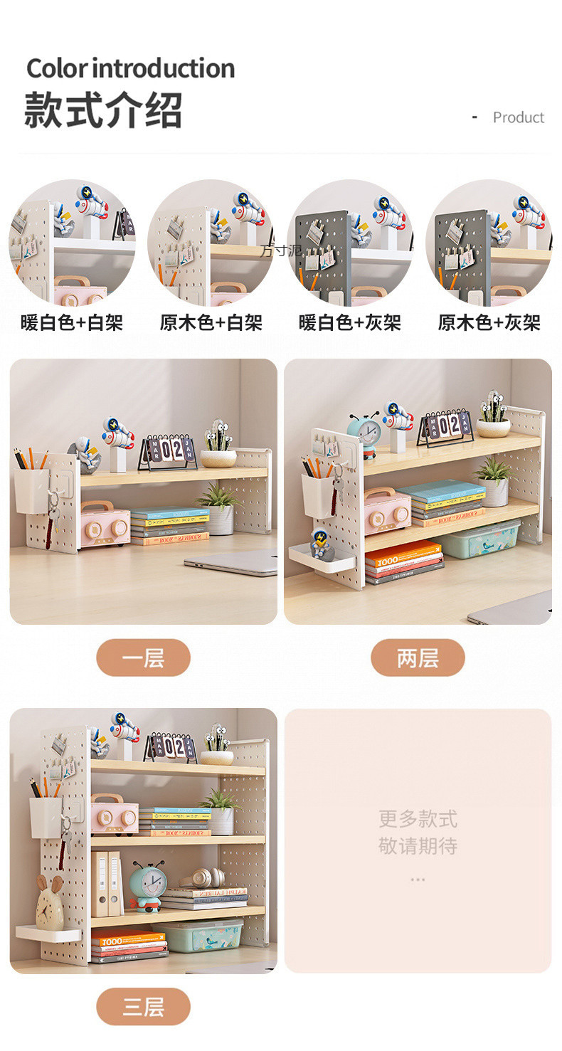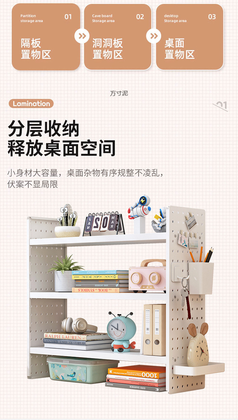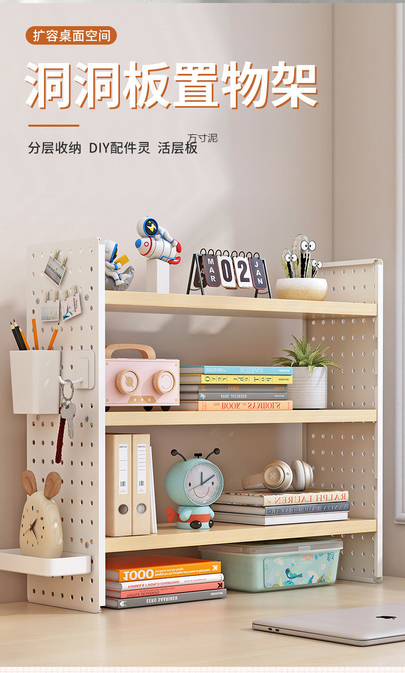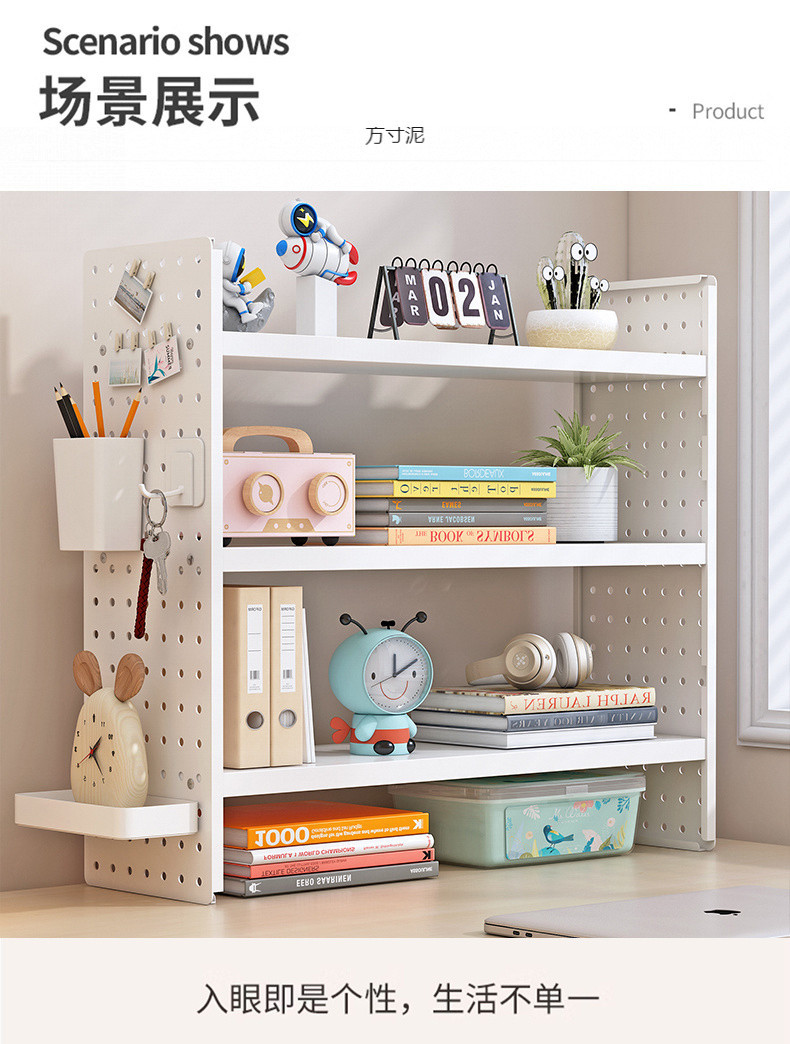 テーブルの棚の穴の板の机の上の本棚の事務室のステーションの多層の収納棚の学生の鉄芸は棚を整理します。