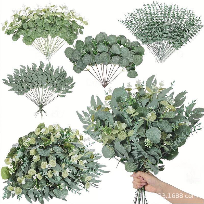 国境を越えたシミュレーションユーカリ挿し木短枝ユーカリdiy装飾帯果ユーカリ木の葉セット人工緑植