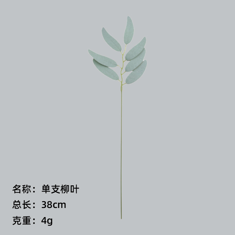 跨境假叶子人造柳叶尤加利叶家居餐桌插花绿植装饰仿真小单支