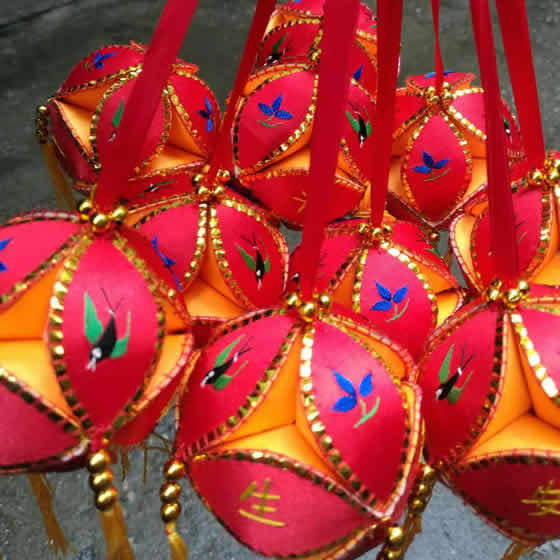 工艺:和其它绣球不一样的是这种绣球采用传统的堆绣手法。只有很少的老艺人掌握了这种绣法!