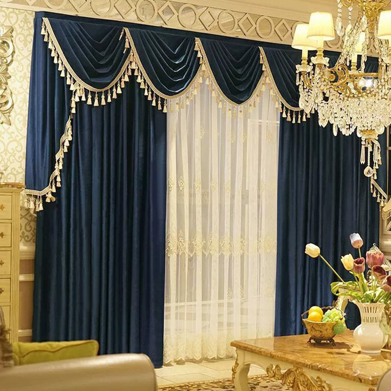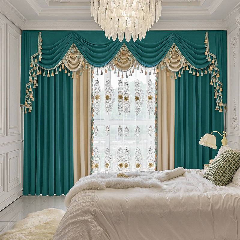 高級豪華ヨーロッパ風フランネルカーテン客間アメリカ刺繍カーテン別荘複式楼カーテン定幅