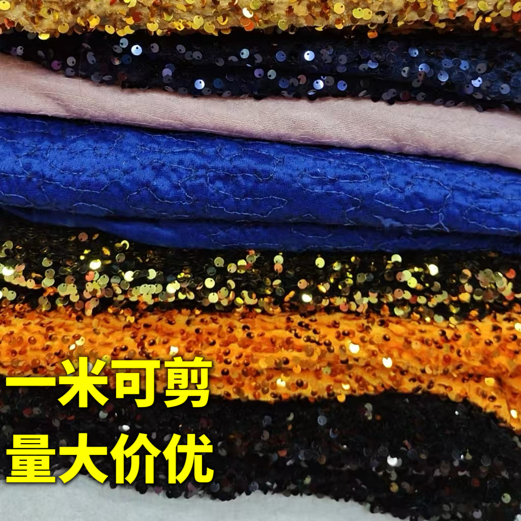 厂家现货5毫米吊片绒布面料亮片面料现货多色珠片刺绣晶片绣花