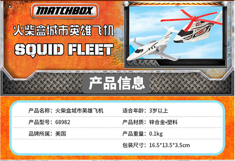 マッチボックス シティヒーロー飛行機 HHT34 戦闘機 子供のおもちゃ 合金ヘリコプター