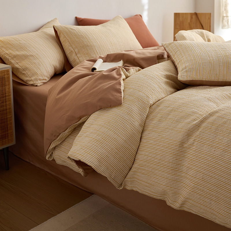 国境を越えたレトロでシンプルなストライプの日本式水洗い研磨ベッド用品4点セットのシーツカバー3点セットの代理