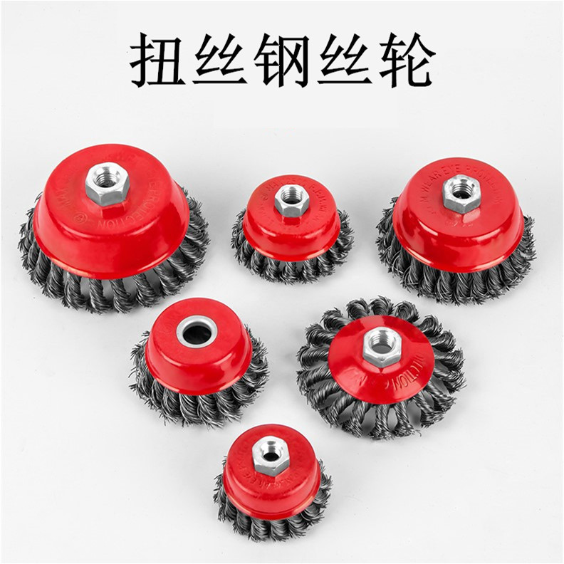 ねじり糸羅椀型ワイヤーホイールステンレスブラシグラインダー研磨錆除去ナット付き工業バリ取りワイヤーブラシ