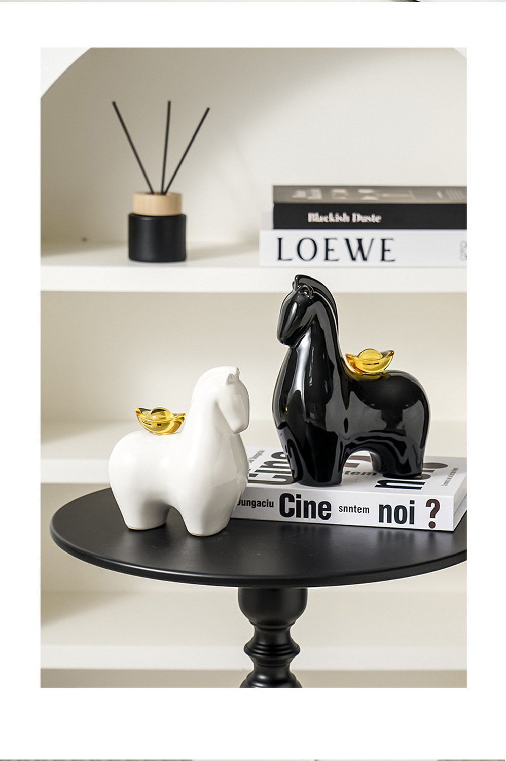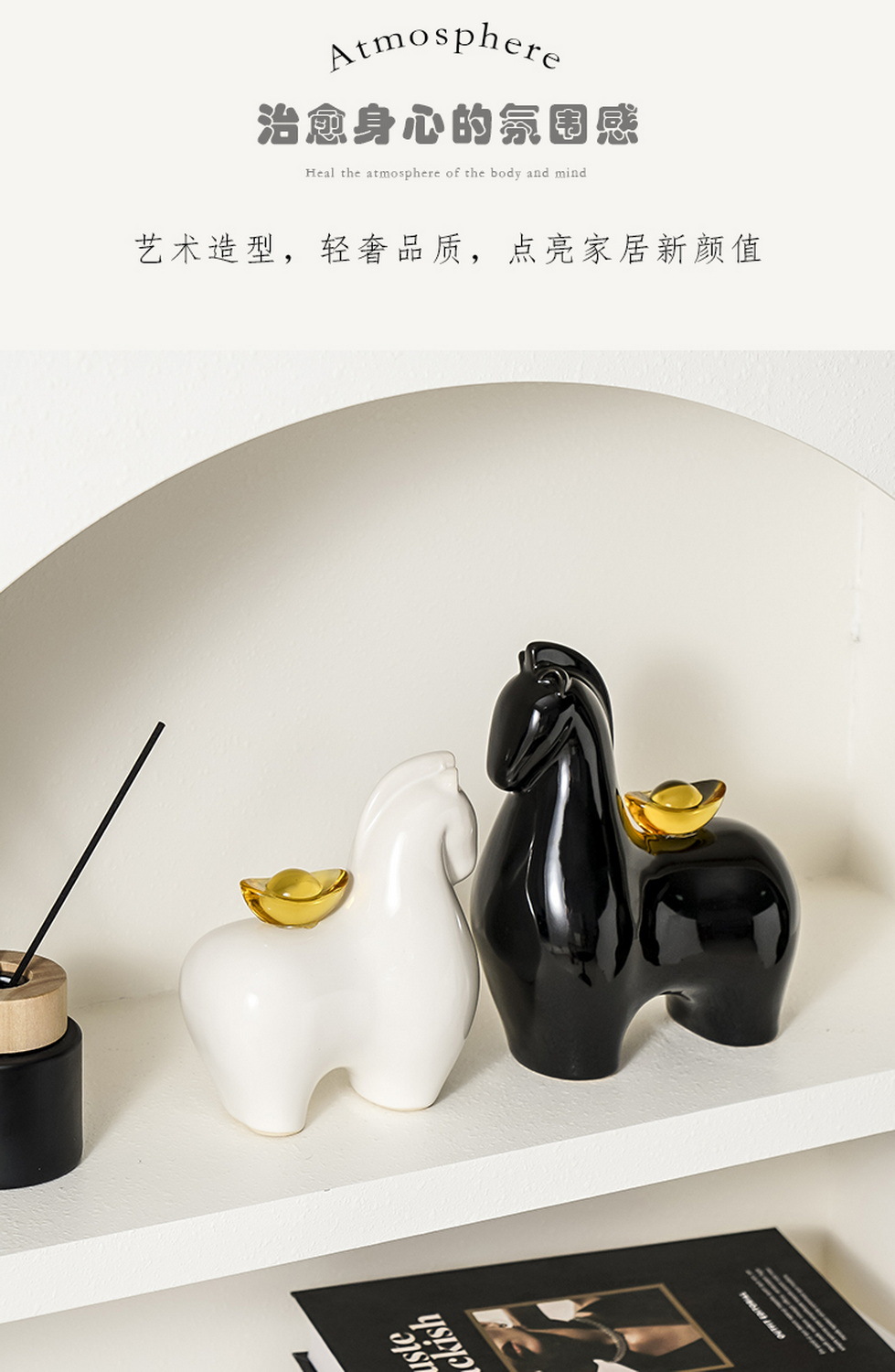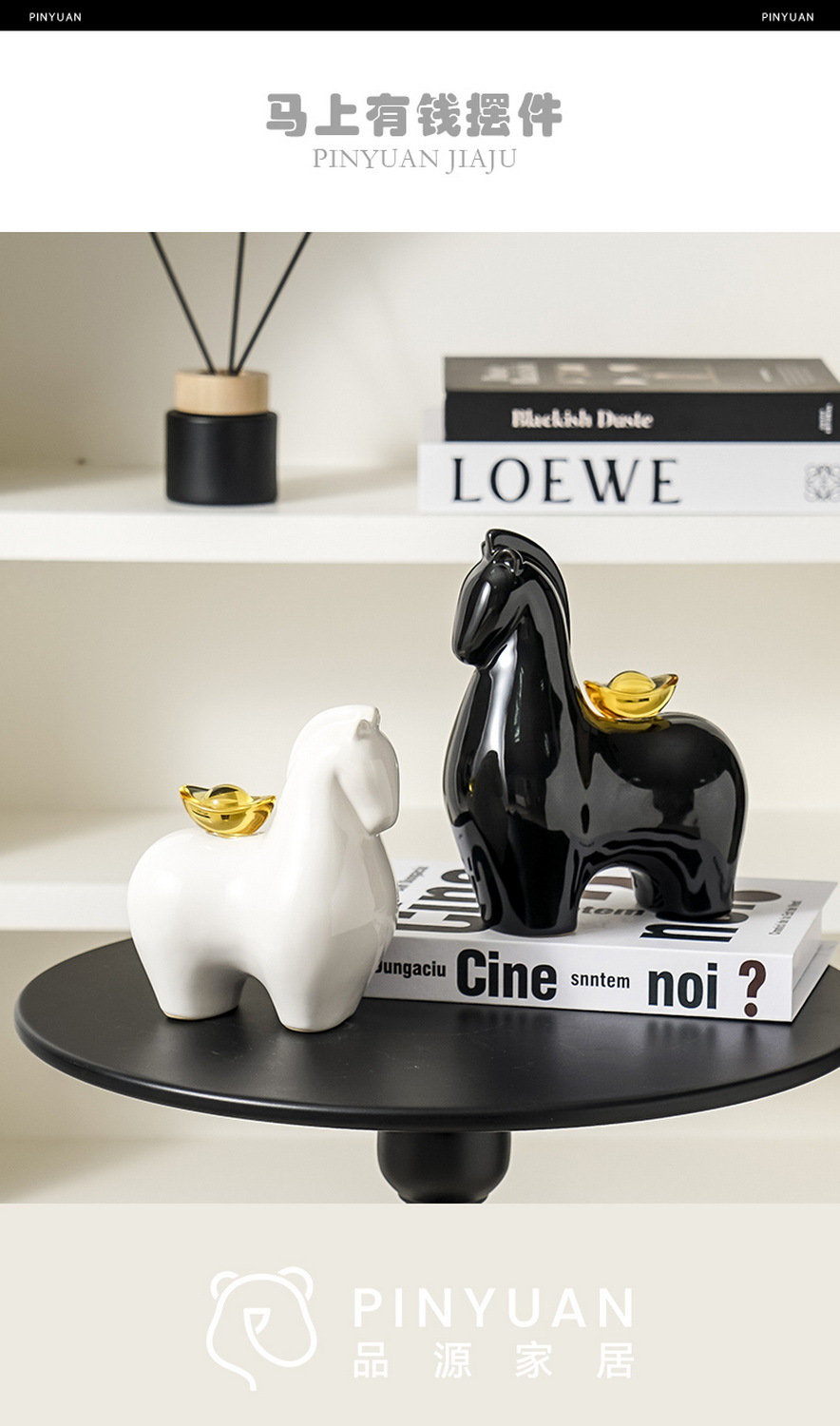 【ドロップシッピング配布】すぐにお金が入ってくるワインキャビネット、玄関ホール、セラミック製ホームデコレーションオーナメント、デスクトップ馬置物