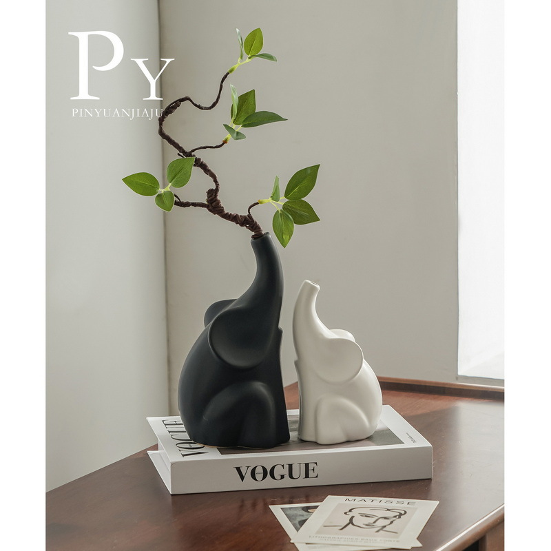 北欧现代大象花瓶桌面摆件仿真花高档家居玄关装饰品工艺品摆件