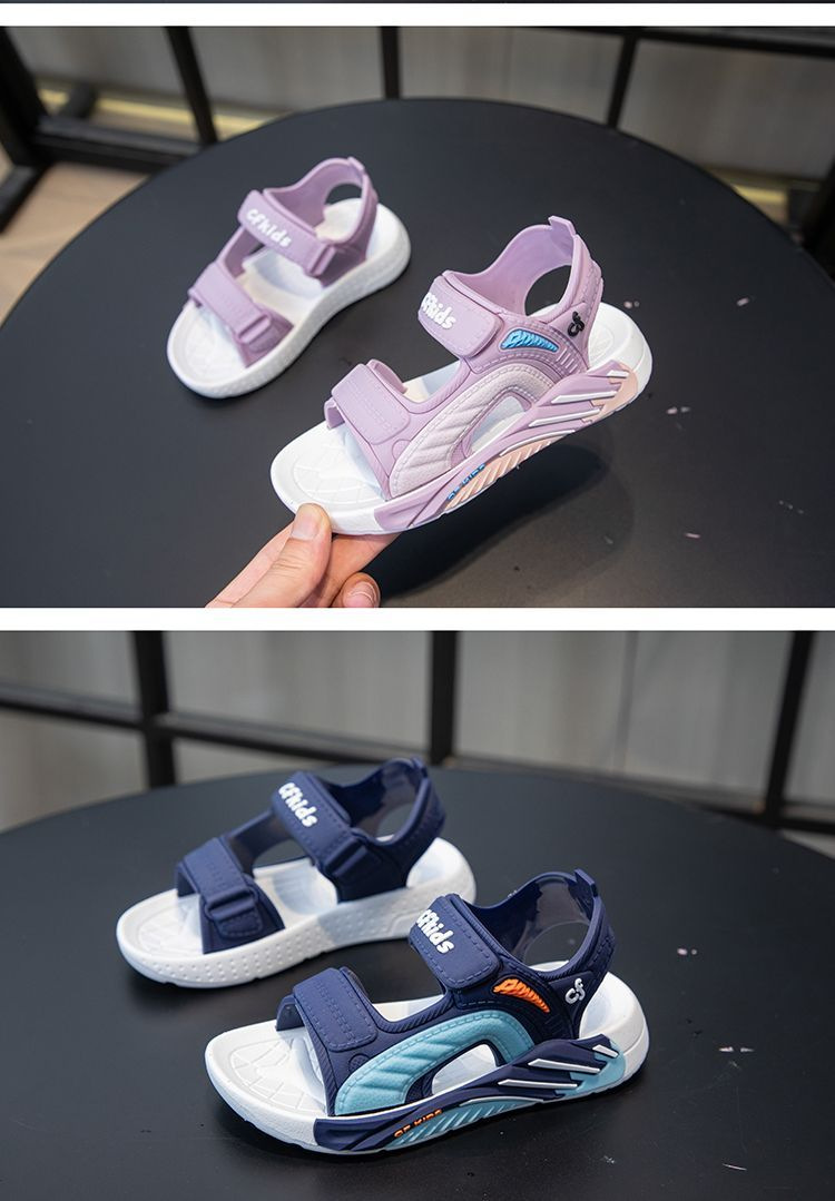 子供サンダル2025新型夏滑り止めソフト底女の子中大童マジック貼り子供靴赤ちゃんビーチサンダル