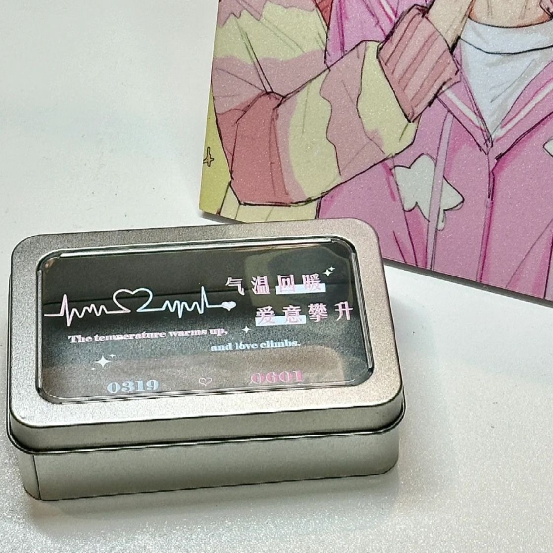 Ins英語イヤホン子猫ブリキケースシール小カード収納学生デスクトップ文房具収納小鉄ケース