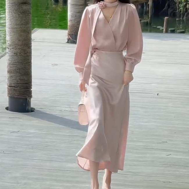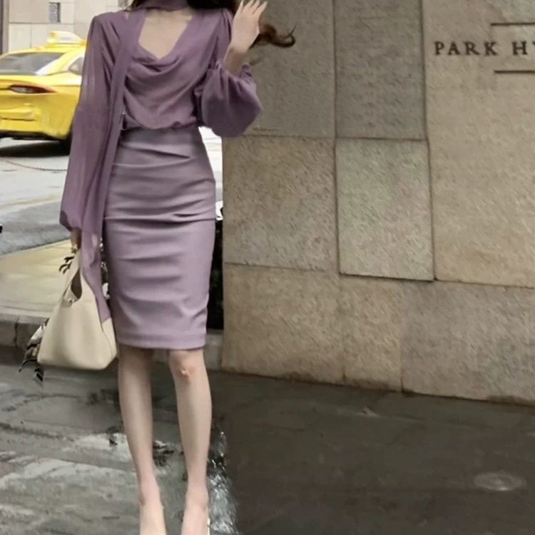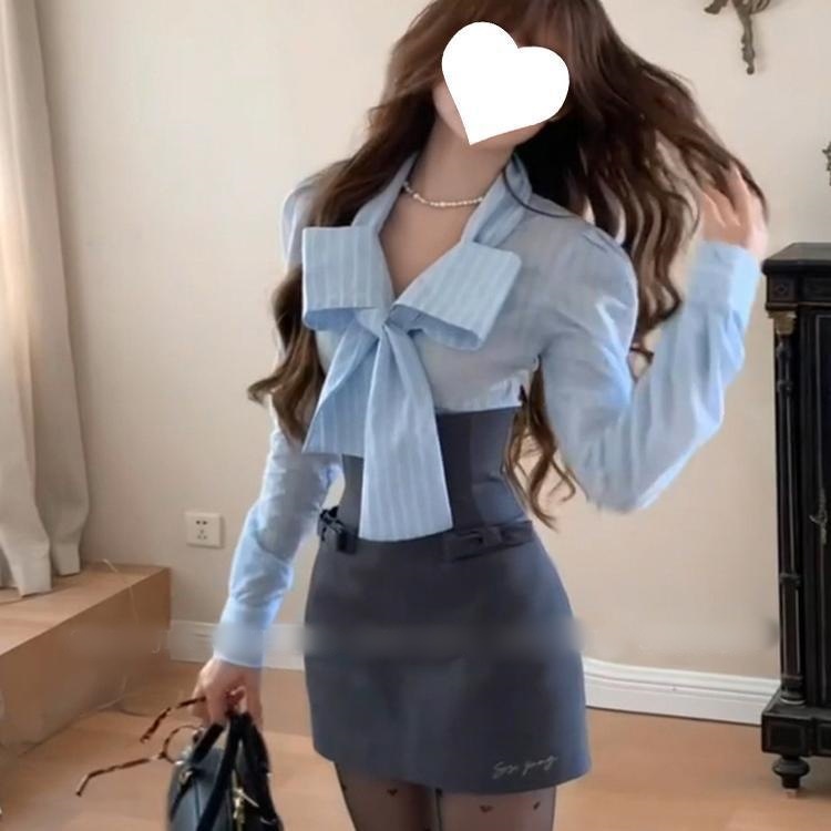 フレンチスタイルのセクシーな長袖シャツと2026年春夏の新作デザインのスリムなスカートスーツ