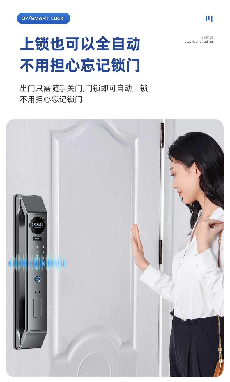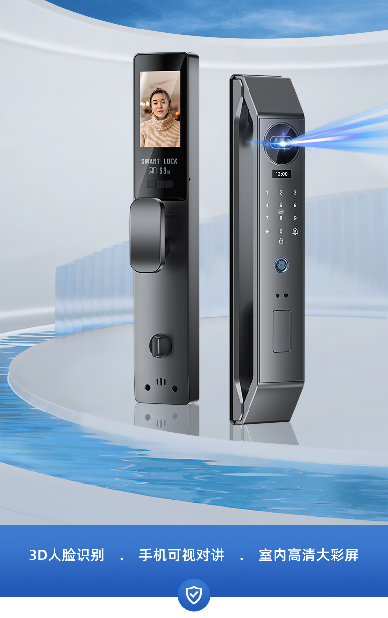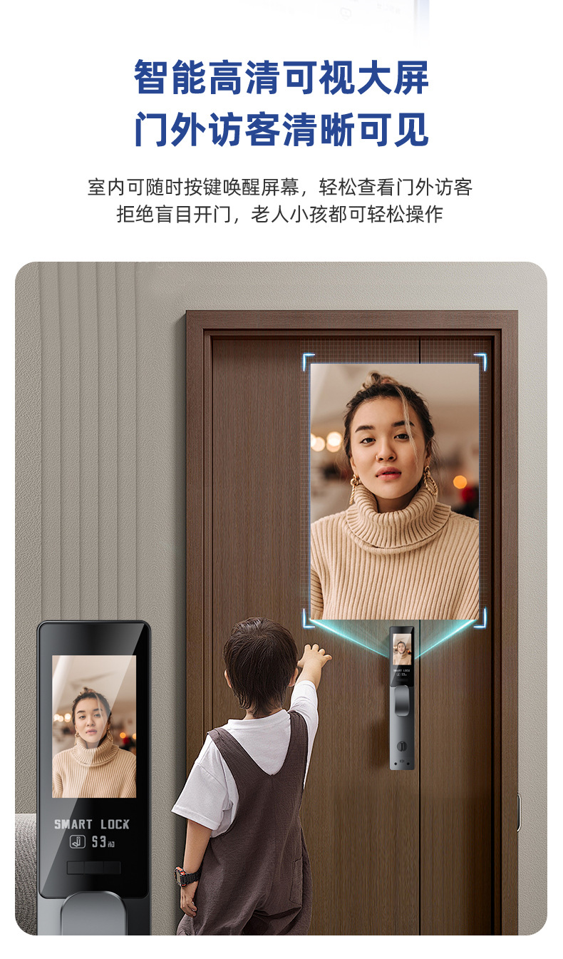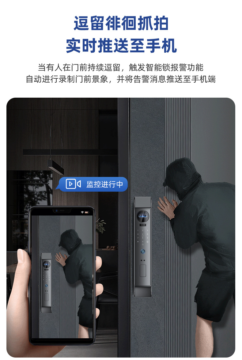 3カメラ監視インターホンスマートロック顔認識指紋ロックホームセキュリティドアロック全自動スマートドアロック