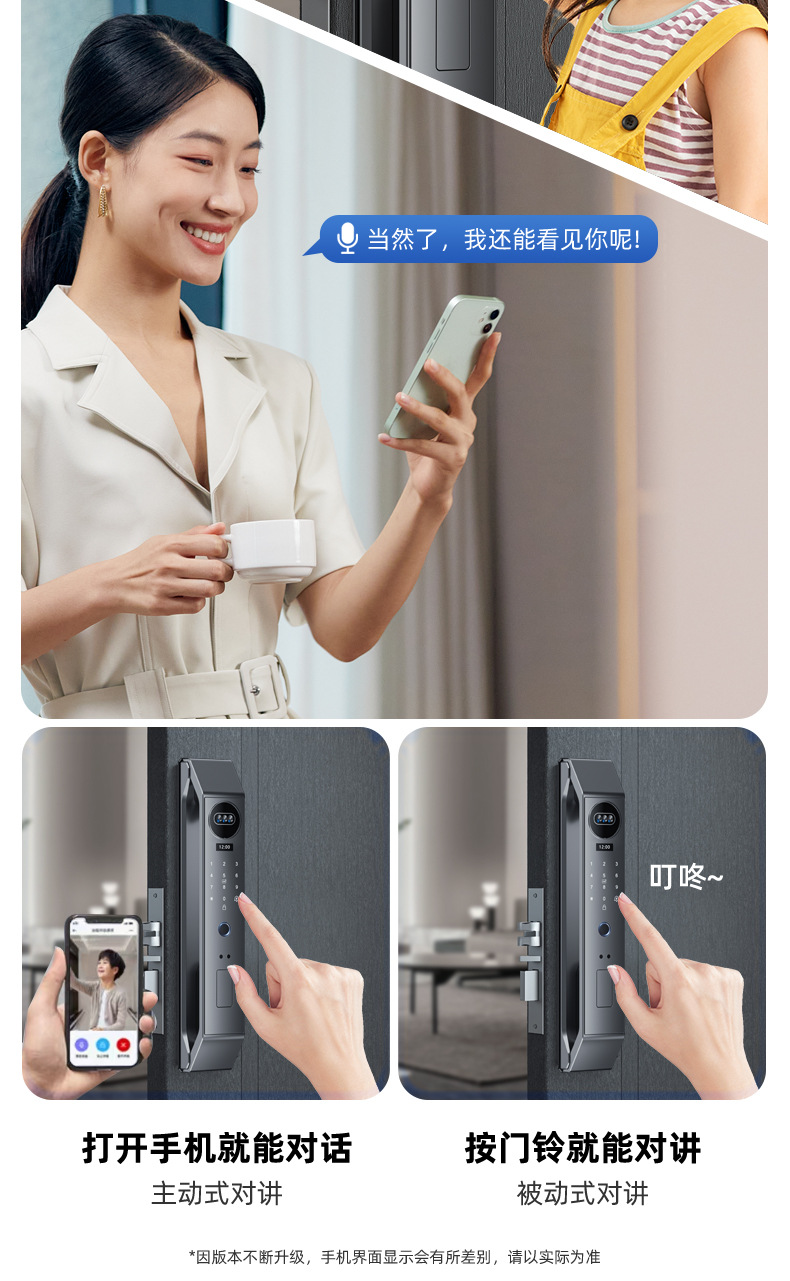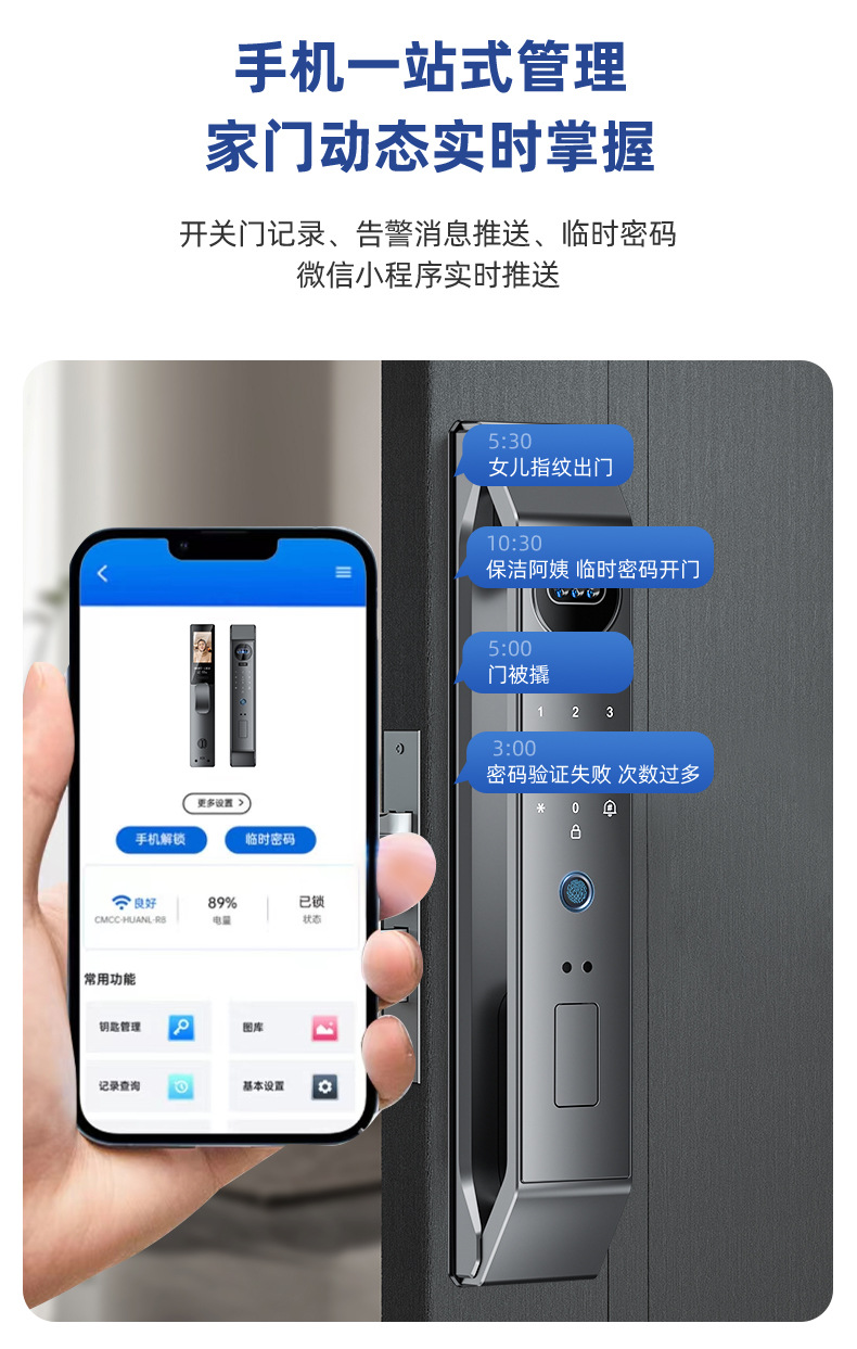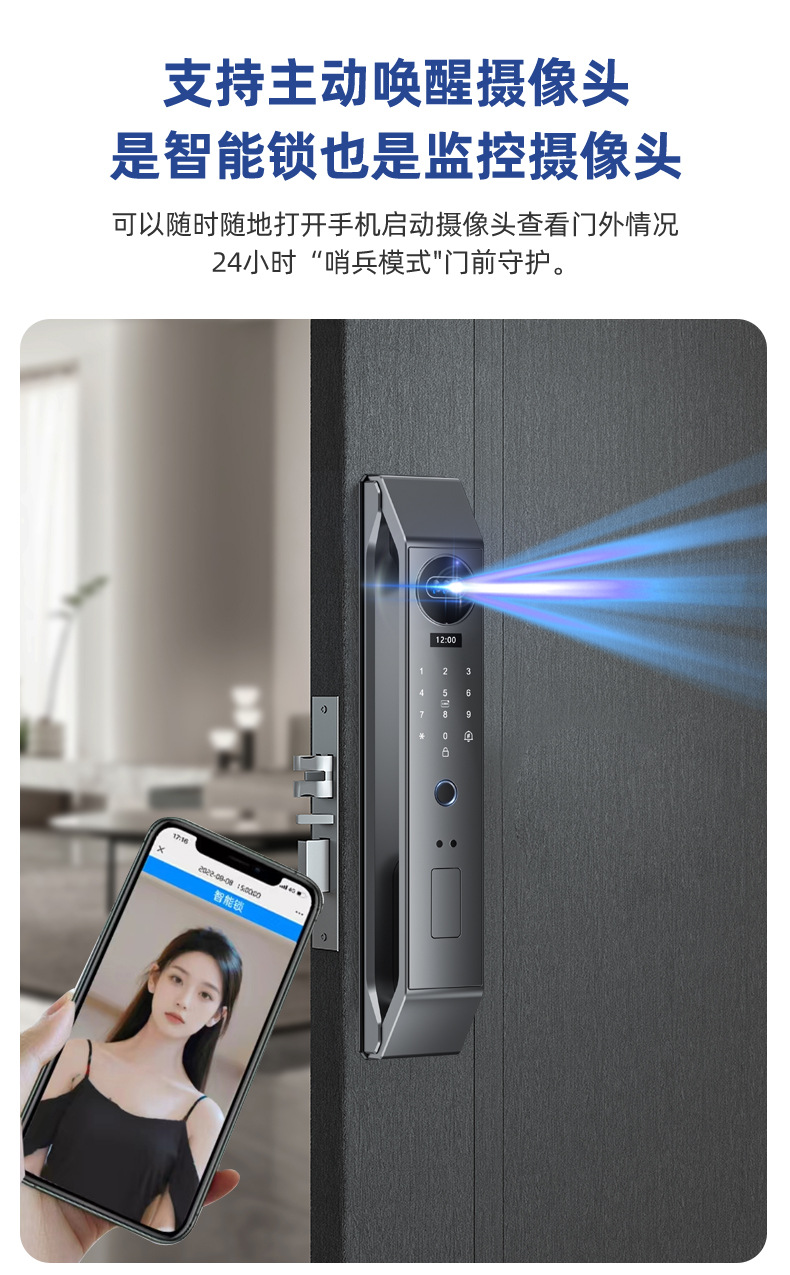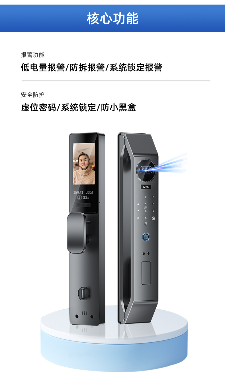 3カメラ監視インターホンスマートロック顔認識指紋ロックホームセキュリティドアロック全自動スマートドアロック