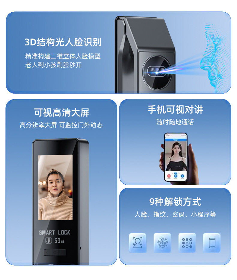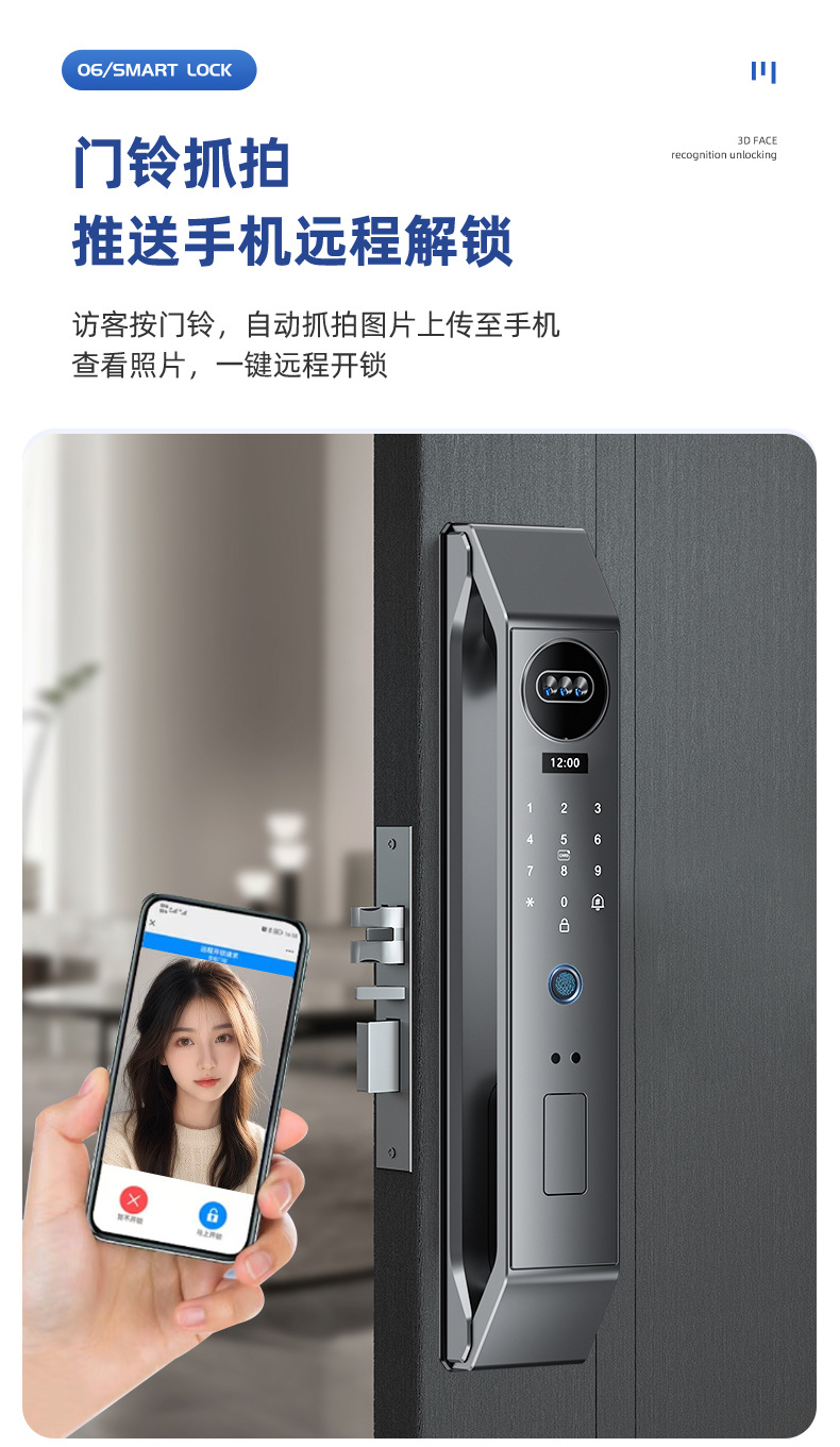 3d顔認識スマートドアロック家庭用可視猫眼指紋ロック盗難防止ドア携帯電話ロックスマートロック工場