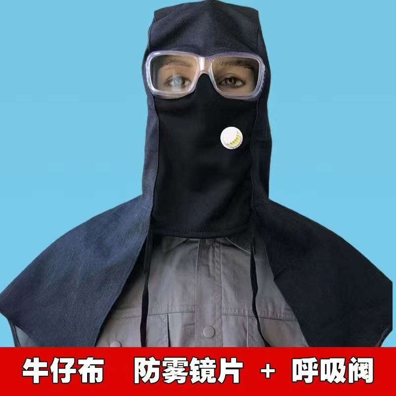 迷彩マントフード、防塵労働保護デニムショールフード、防塵、工業用防塵研削マスク、通気性と耐摩耗性