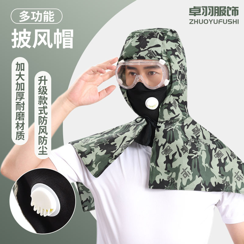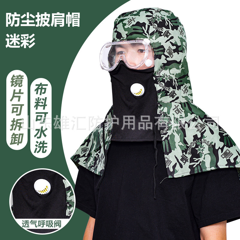 迷彩マント帽子防塵労働保護カウボーイマント帽子灰防止工業粉塵研磨マスク通気耐摩耗性