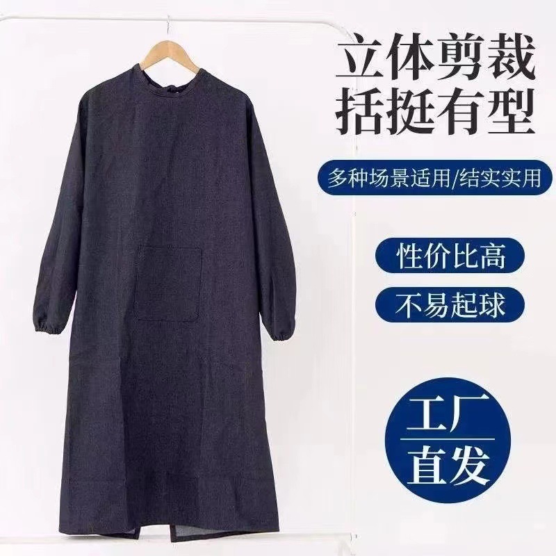 デニムカバー汚れ防止大きいサイズ長袖エプロン袖付き耐摩耗性防汚溶接工エプロン袖付きエプロン労働保護