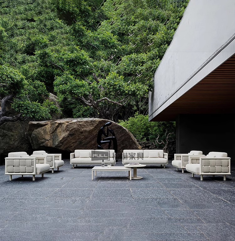 北欧屋外ソファ中庭屋外バルコニーヴィラ籐椅子組み合わせ防雨と日焼け防止屋外レジャー籐家具