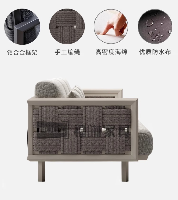 モダンなシンプルな家庭の屋外のソファーの組み合わせホテルの花園の露天の鉄芸の金属のソファーの防水のアルミニウム合金のソファー