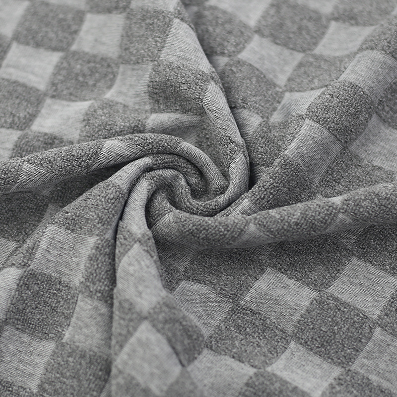 面料成分:95%涤纶 5%氨纶 面料名称:提花小方格,针织。