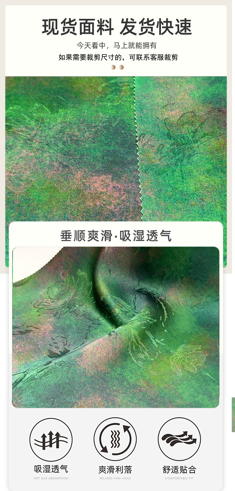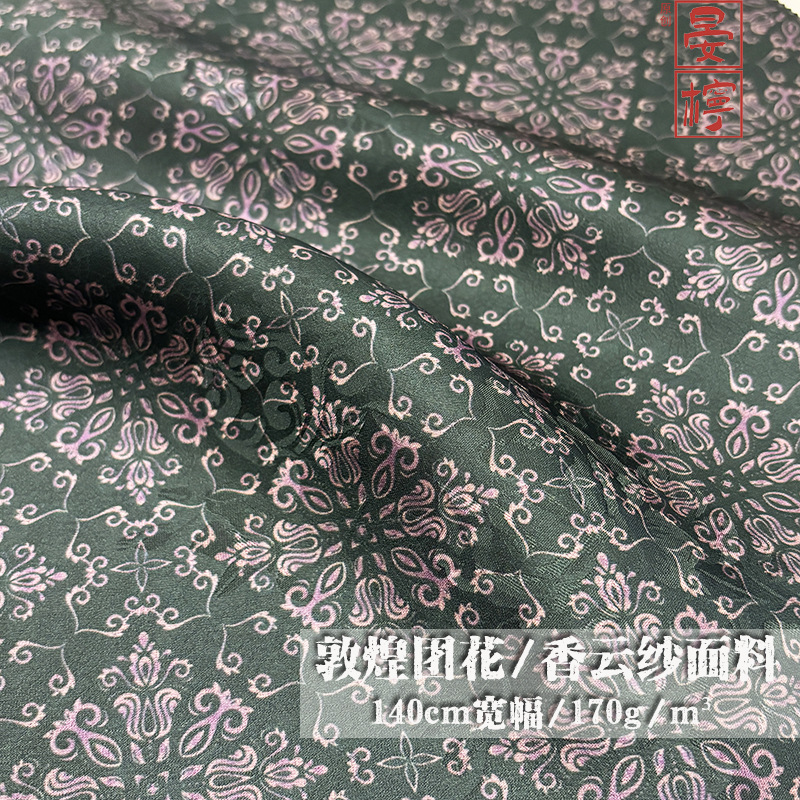墨绿团花纹高端服装面料人丝仿桑蚕丝香云纱布料国风香云纱汉服秋