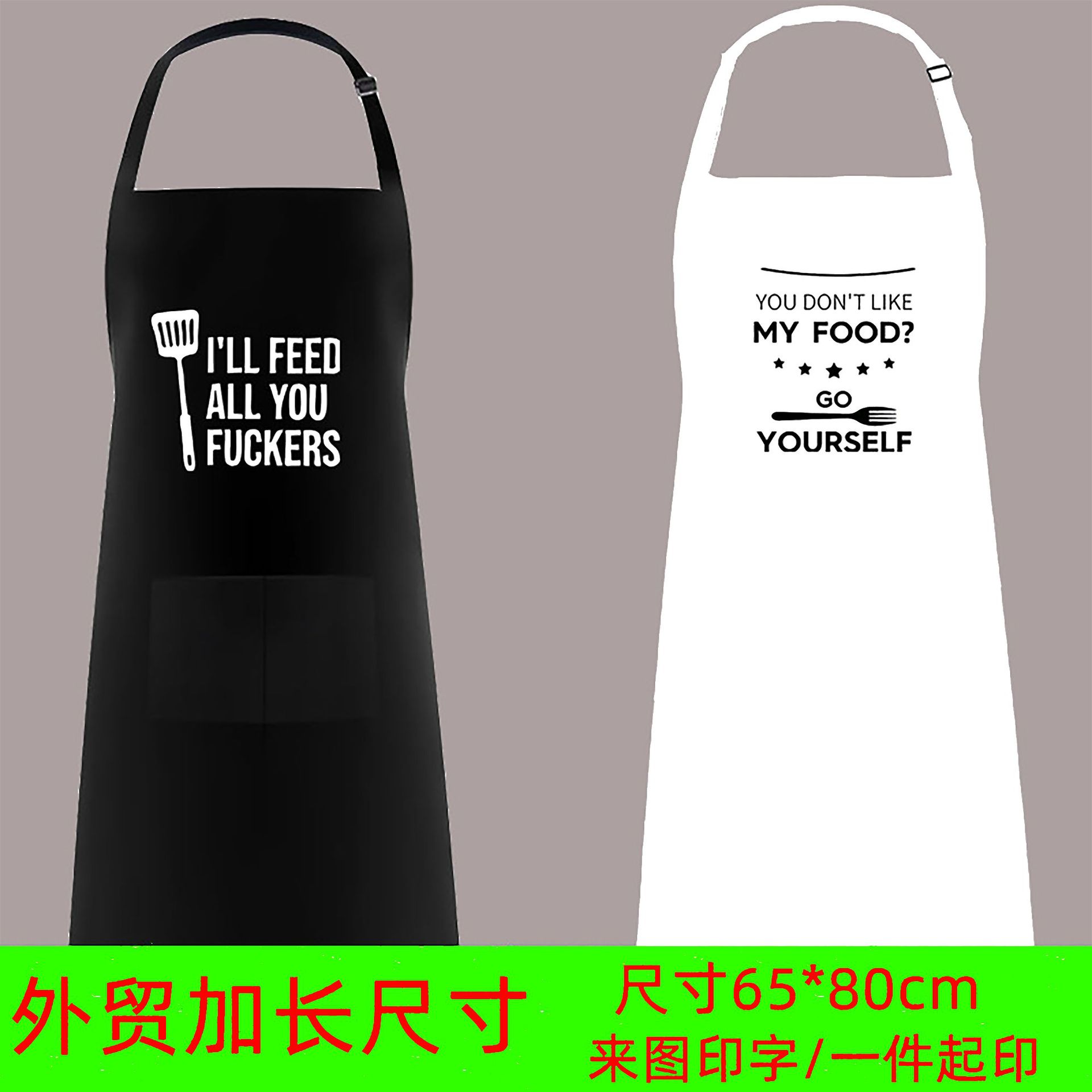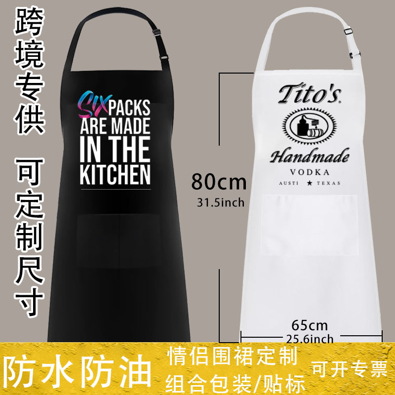外国貿易クロスボーダー防水防油延長エプロンは英語ロゴ調理キッチン男女エプロンの印字を調節できる