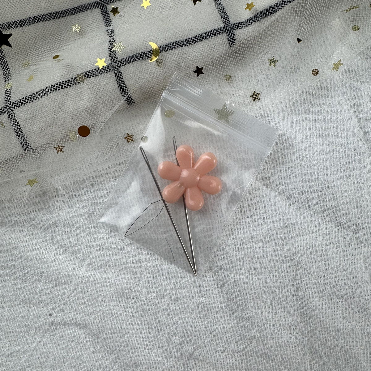 セットA: 5cm針2本+ピンクの花1個,パッケージB:はさみ+小さな花+縫い目リムーバー