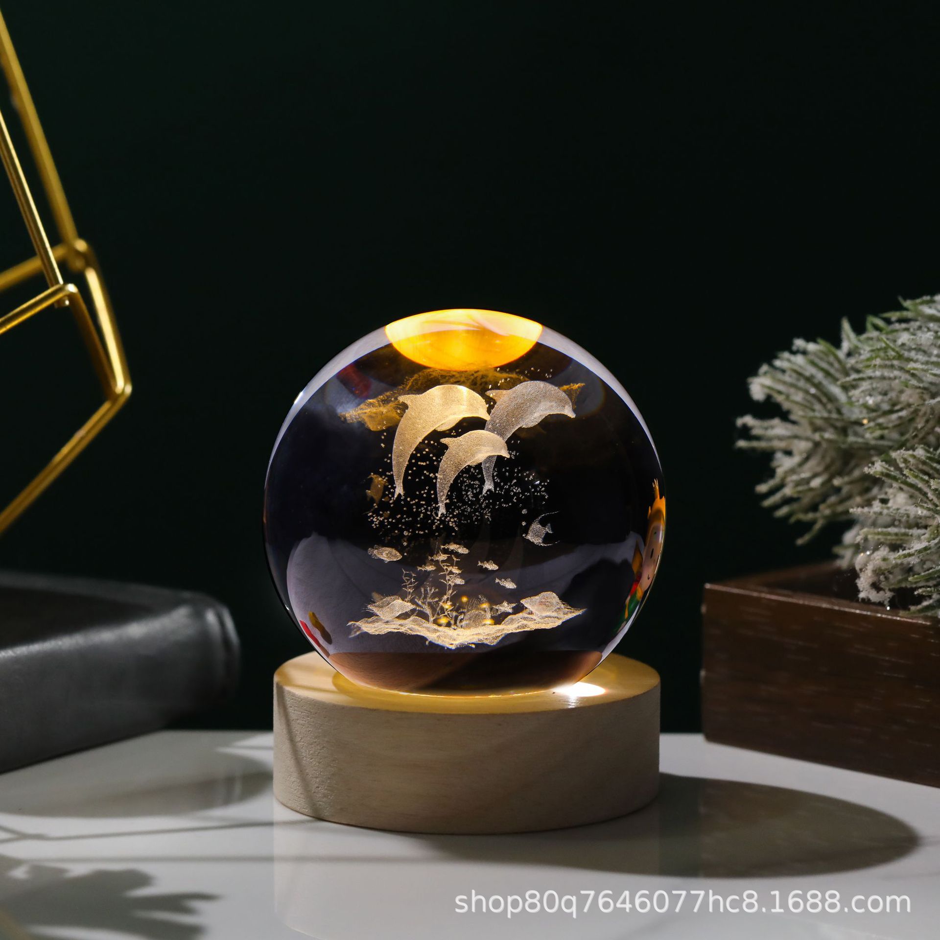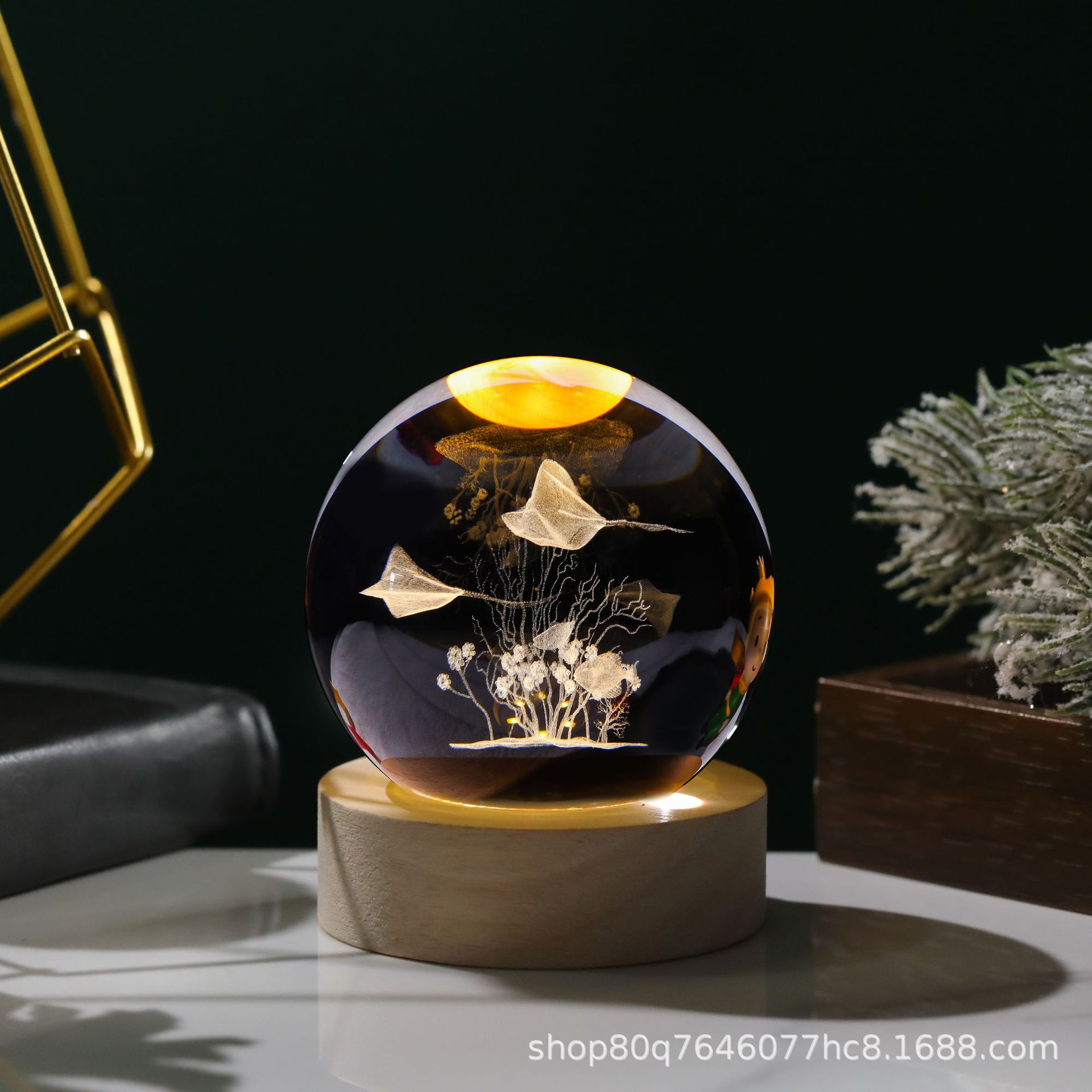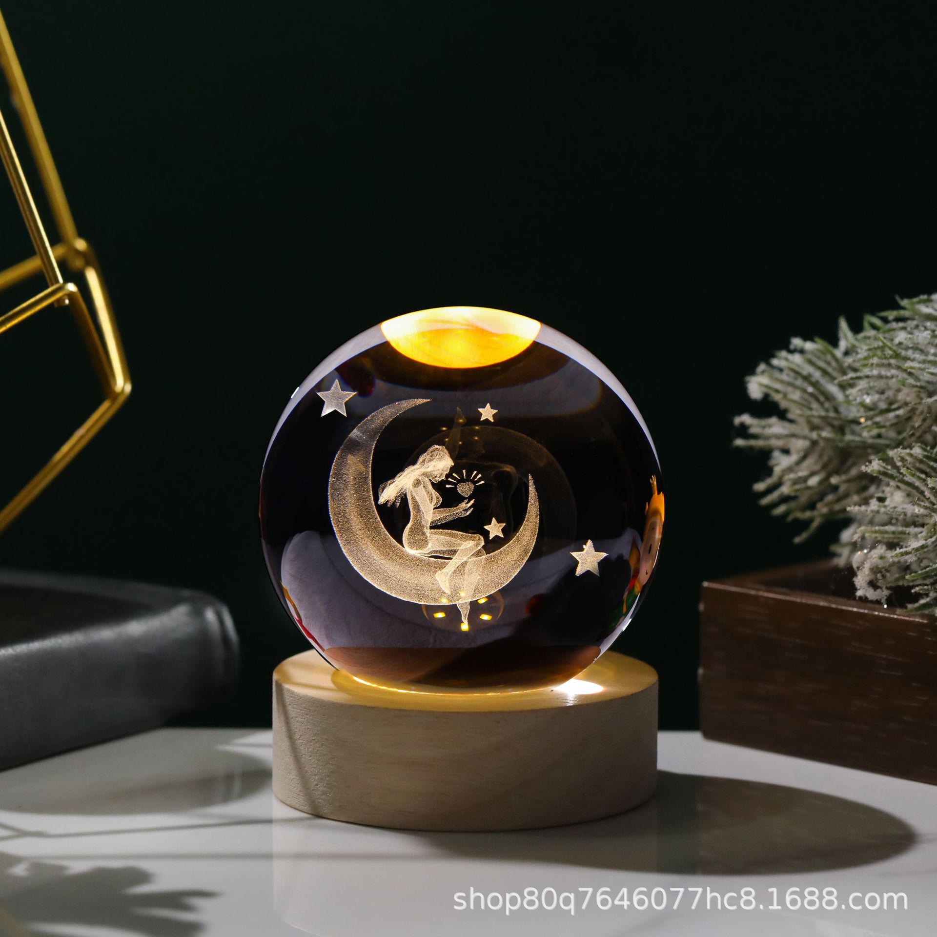 クロスボーダー卸売デスクトップ置物3d内彫刻水晶玉小夜灯実木ベース創意祝日誕生日プレゼント
