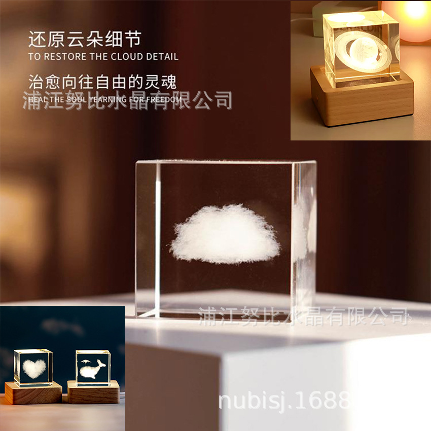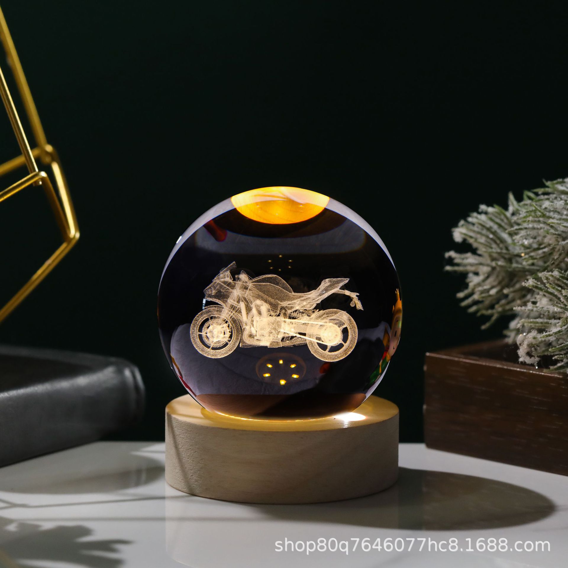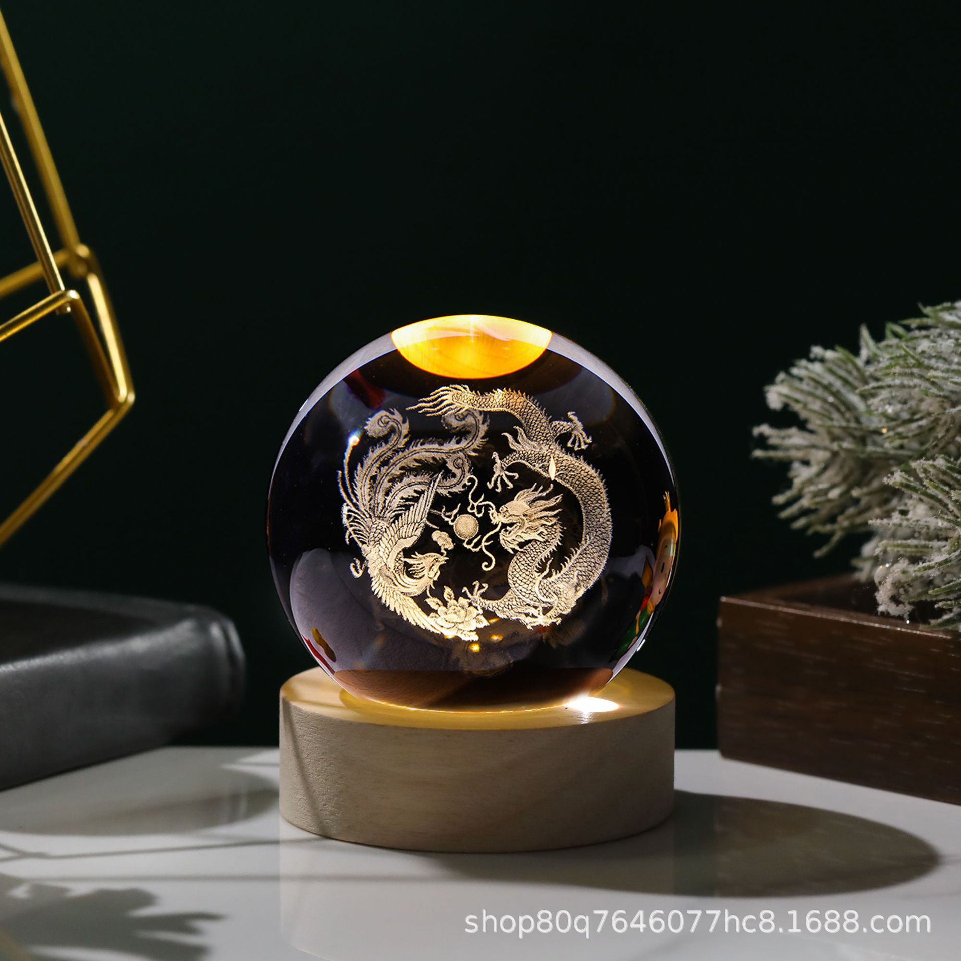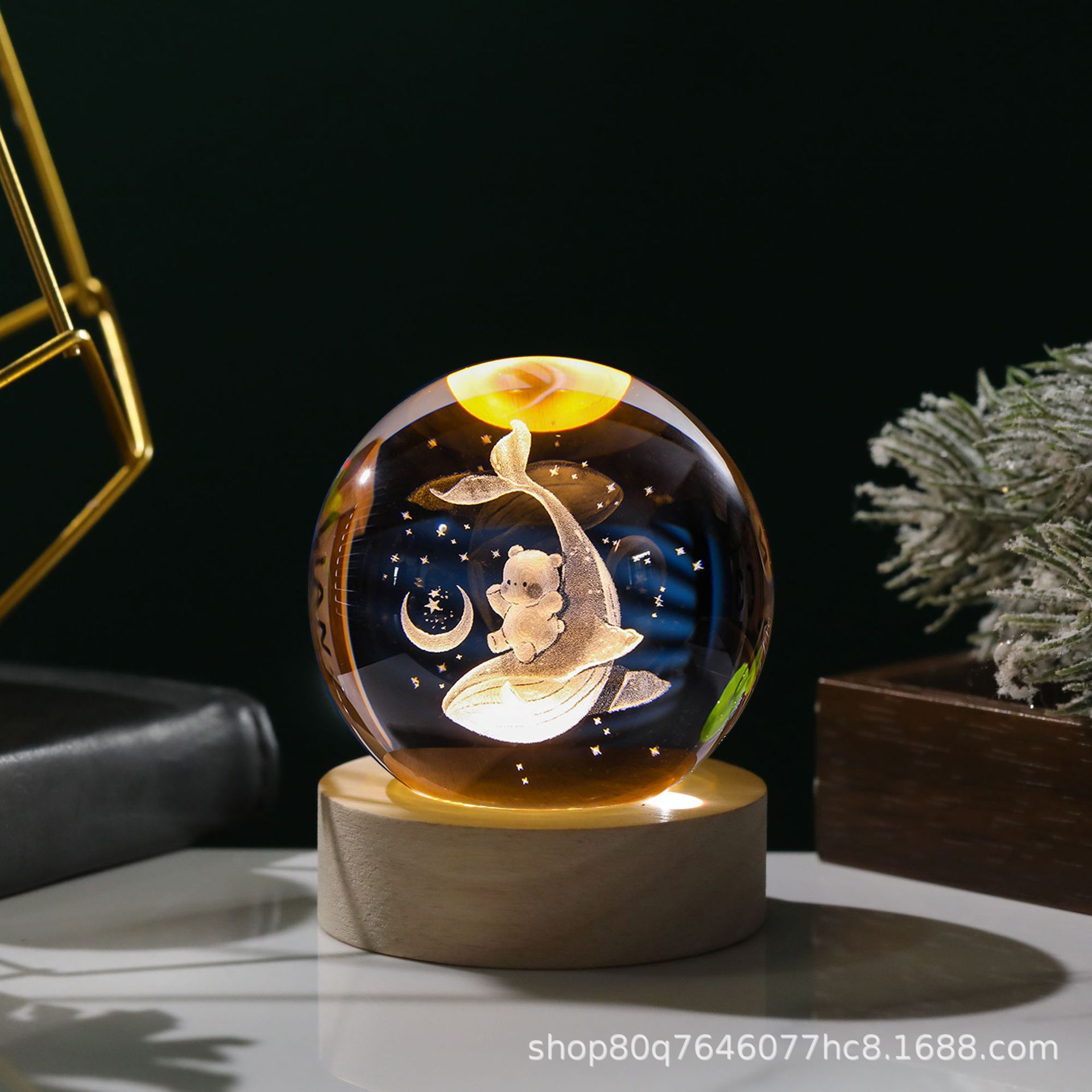 クロスボーダー卸売デスクトップ置物3d内彫刻水晶玉小夜灯実木ベース創意祝日誕生日プレゼント