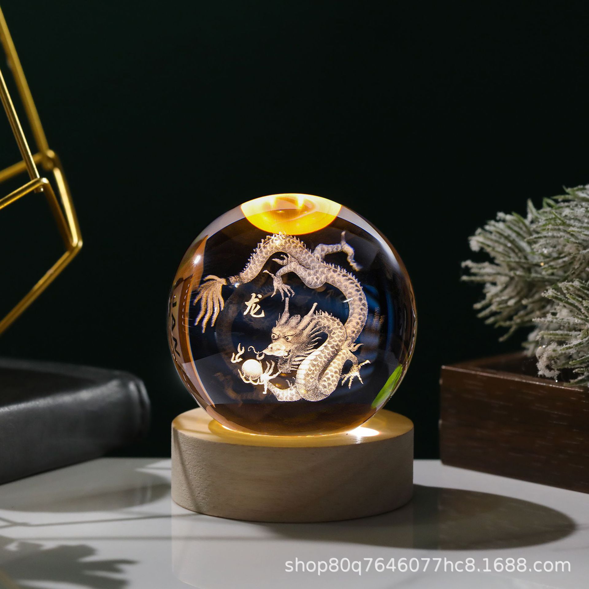 クロスボーダー卸売り12生肖水晶球内彫刻発光小夜灯創意デスクトップ置物木台学生プレゼント