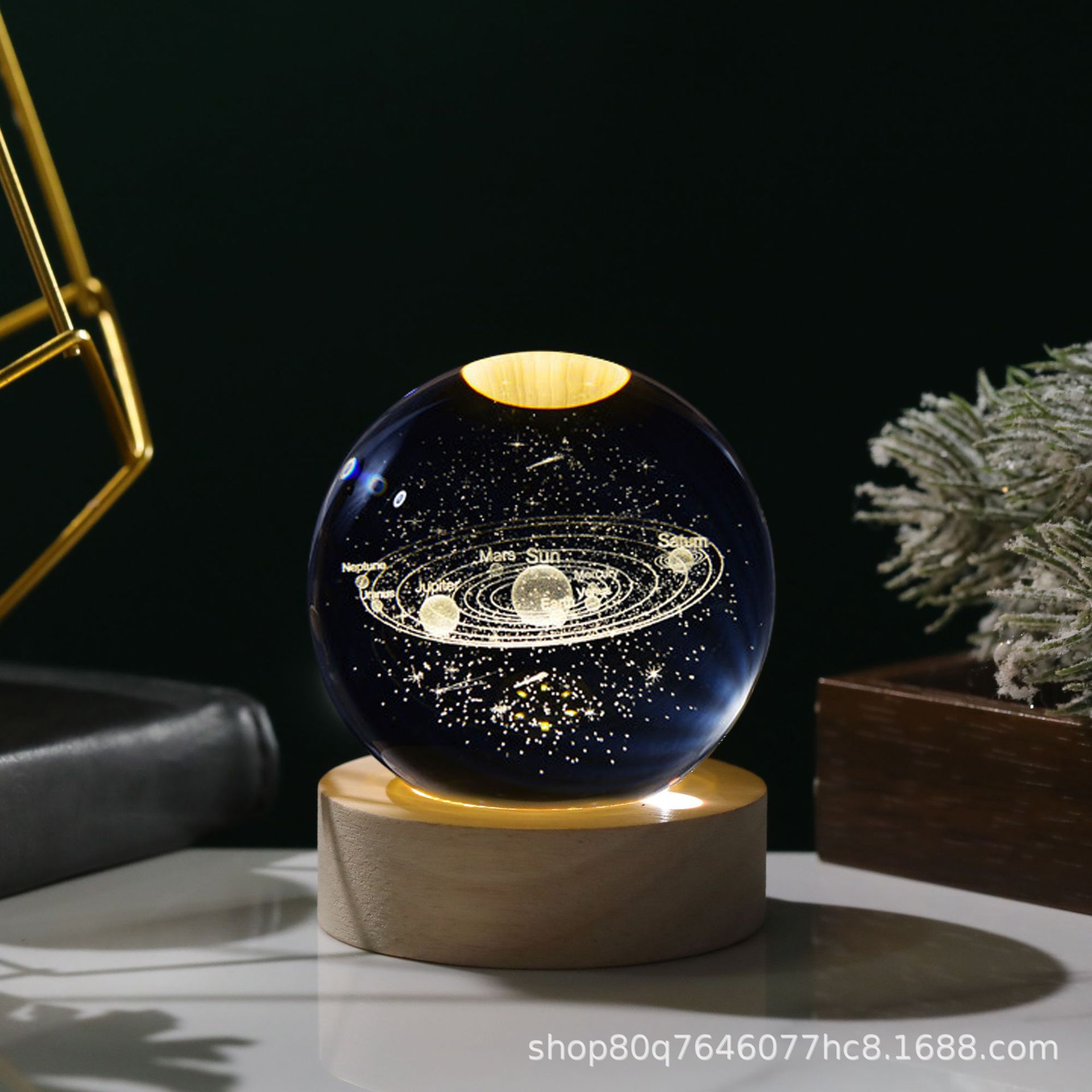 メーカー直販卸売太陽系銀河月創意3dレーザー内彫刻水晶球小夜灯