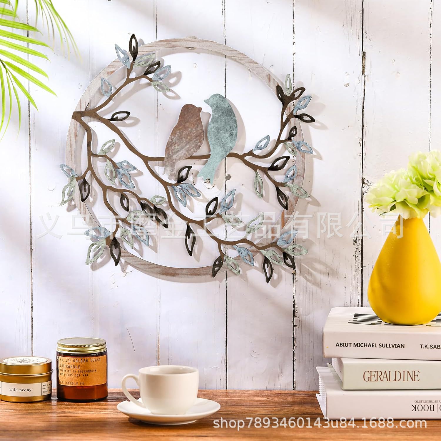 クロスボーダー工芸品アイアンアートラウンドラブバードシルエットリビングルームの装飾装飾品ライト高級スタイルメタルホームデコレーション