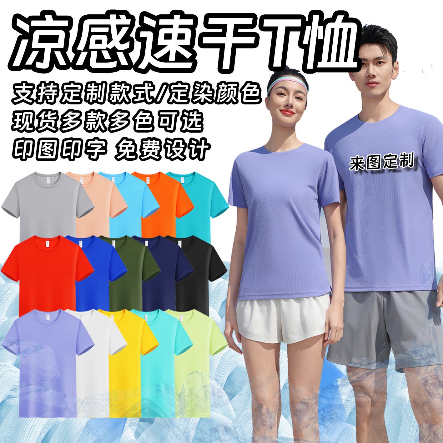 速乾性アイスシルクTシャツ、マラソンスポーツ用広告シャツ、ロゴカスタムプリント、卸売イベントウェア