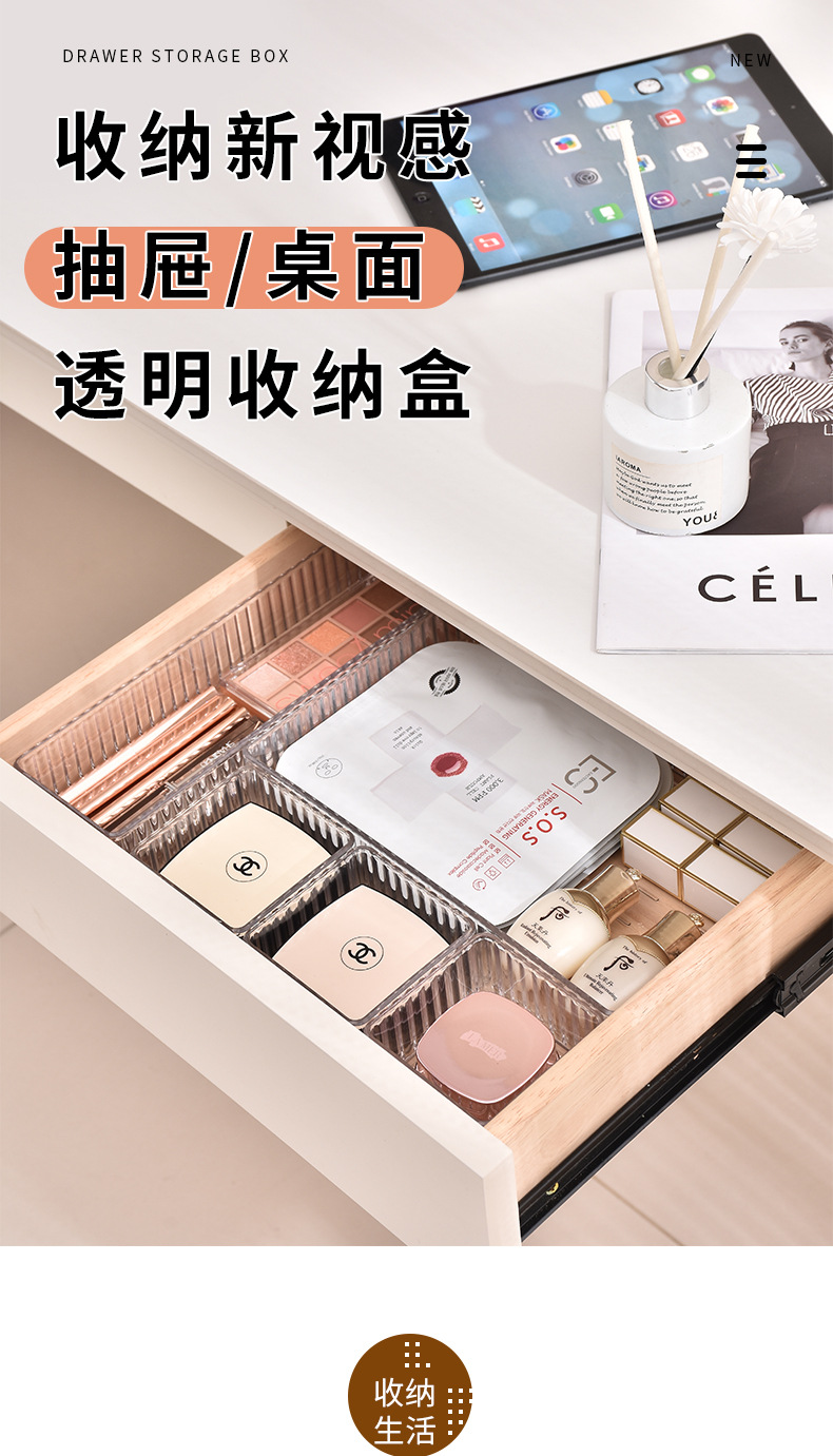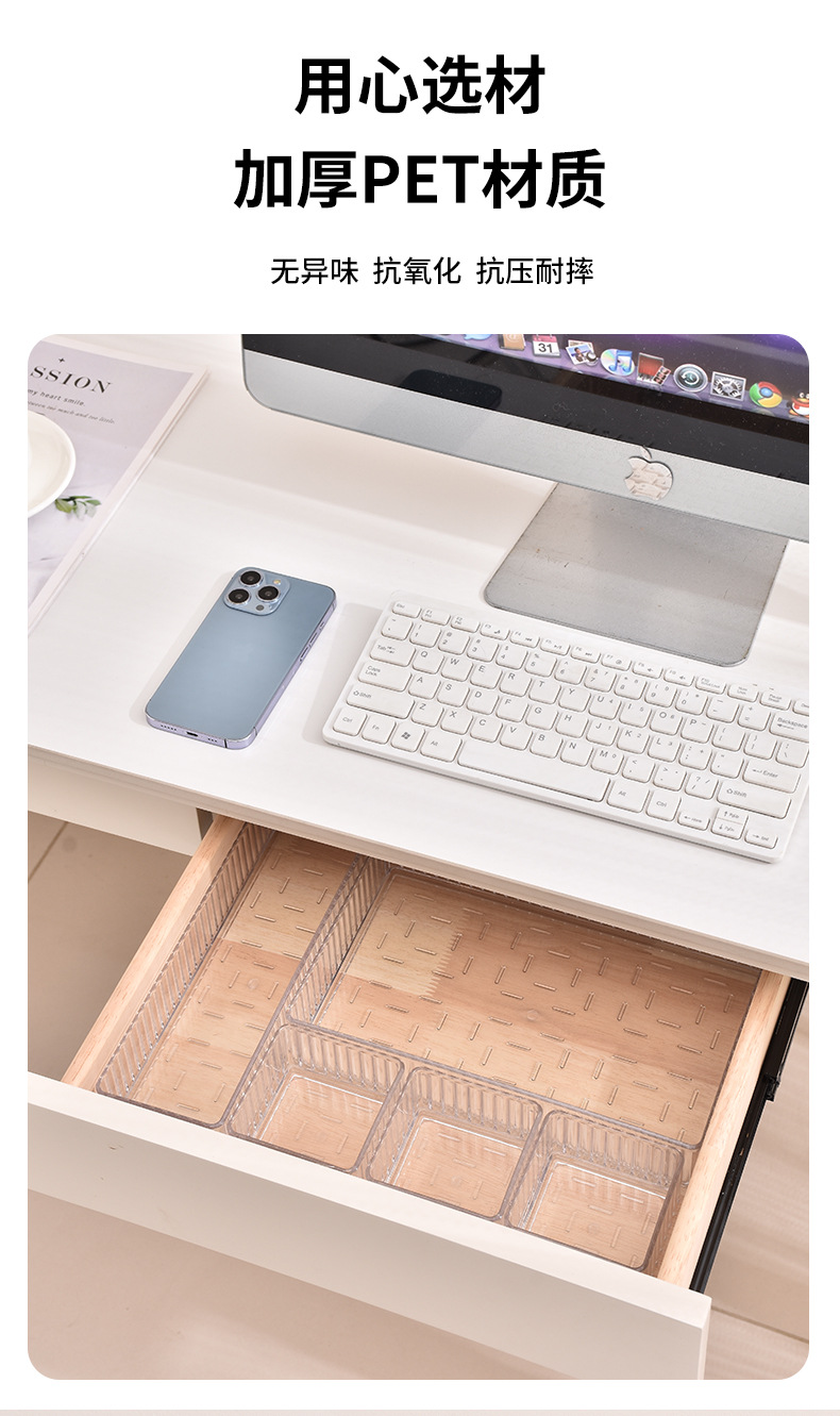 PETデスクトップ収納ボックス引き出し内蔵仕切り伸縮可能整理ボックスキッチン食器化粧品分格ボックス