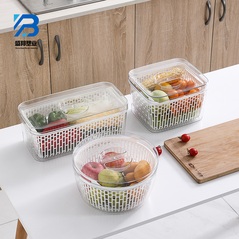 新しい台所の水たまりかごはpet水たまりかごの二重透明な野菜かごの家庭用多機能の果物かごを厚くします。