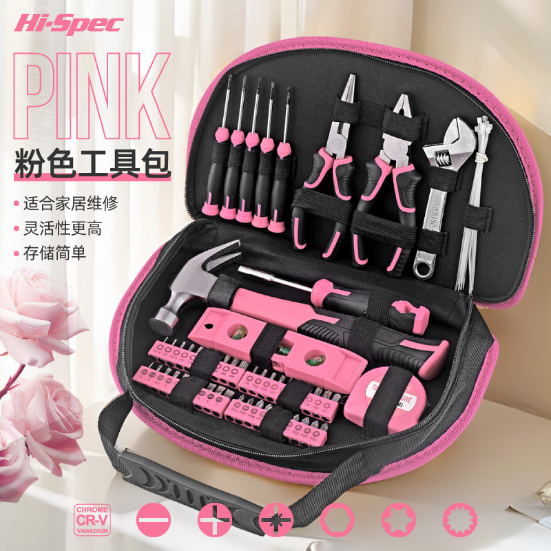 Hi-Spec 63点セットレディースピンクツールセットギフトツール家庭用修理ツールセット