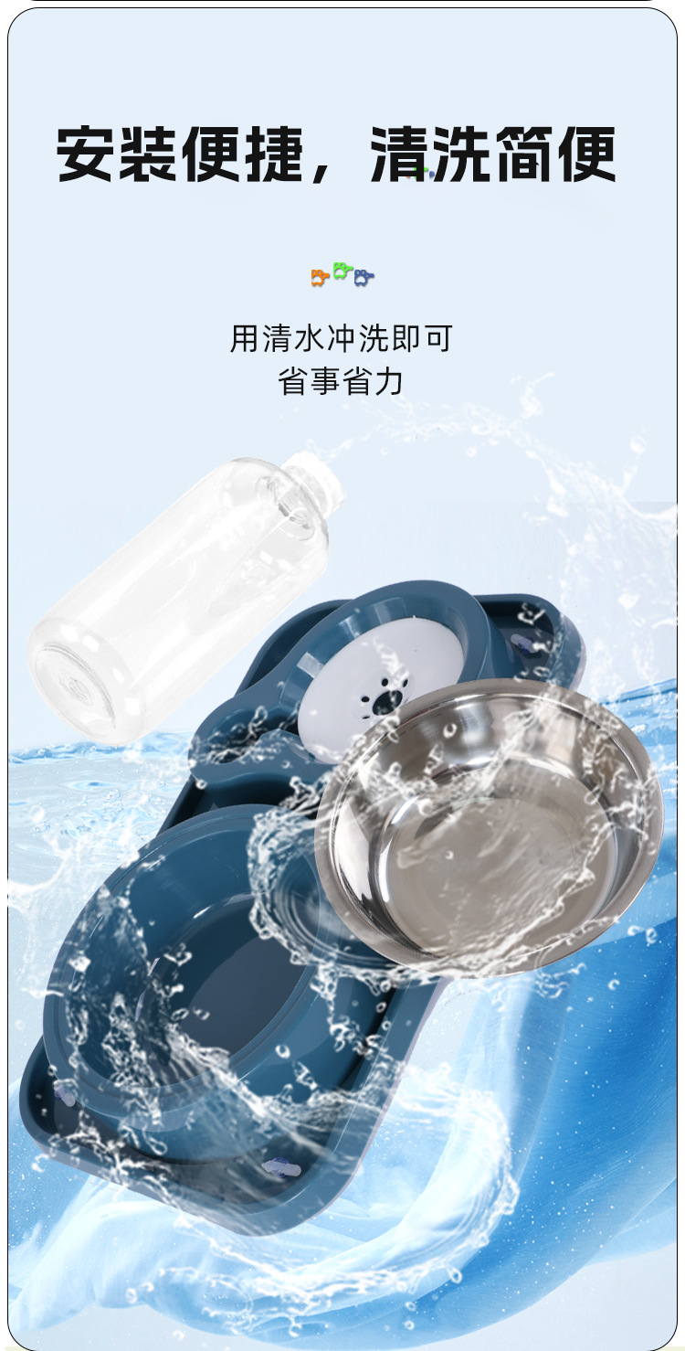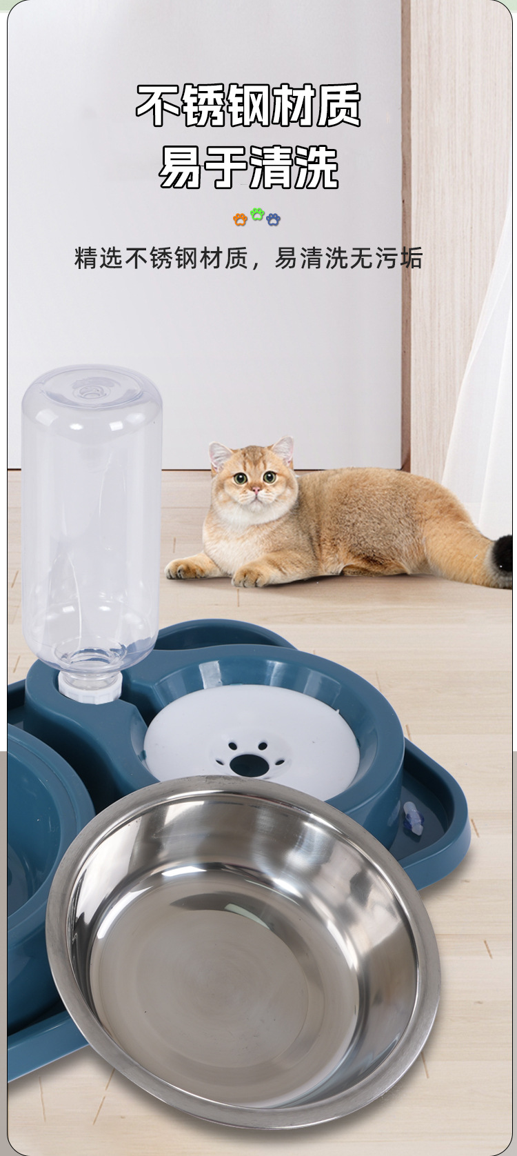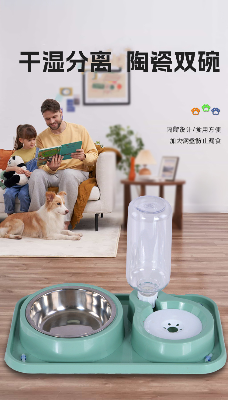 跨境猫碗双碗自动喂食器狗狗饮水器分离式易冲洗猫盆狗碗宠物碗