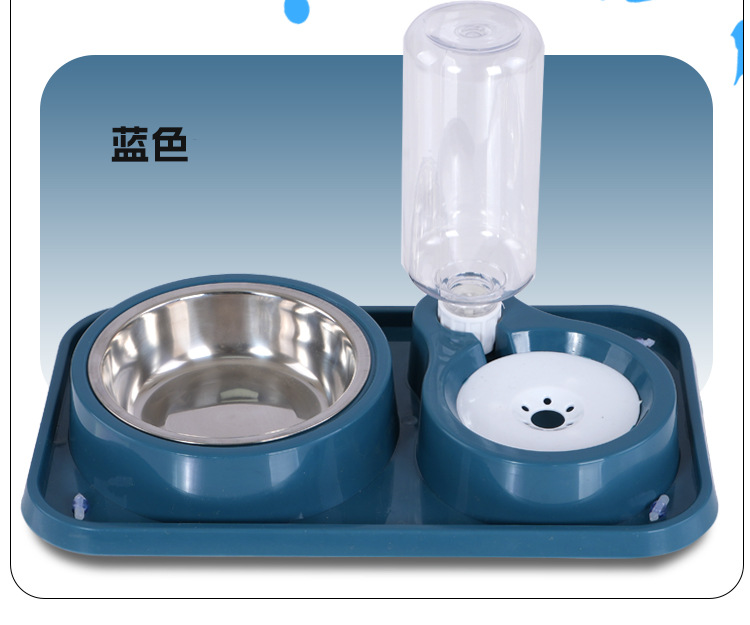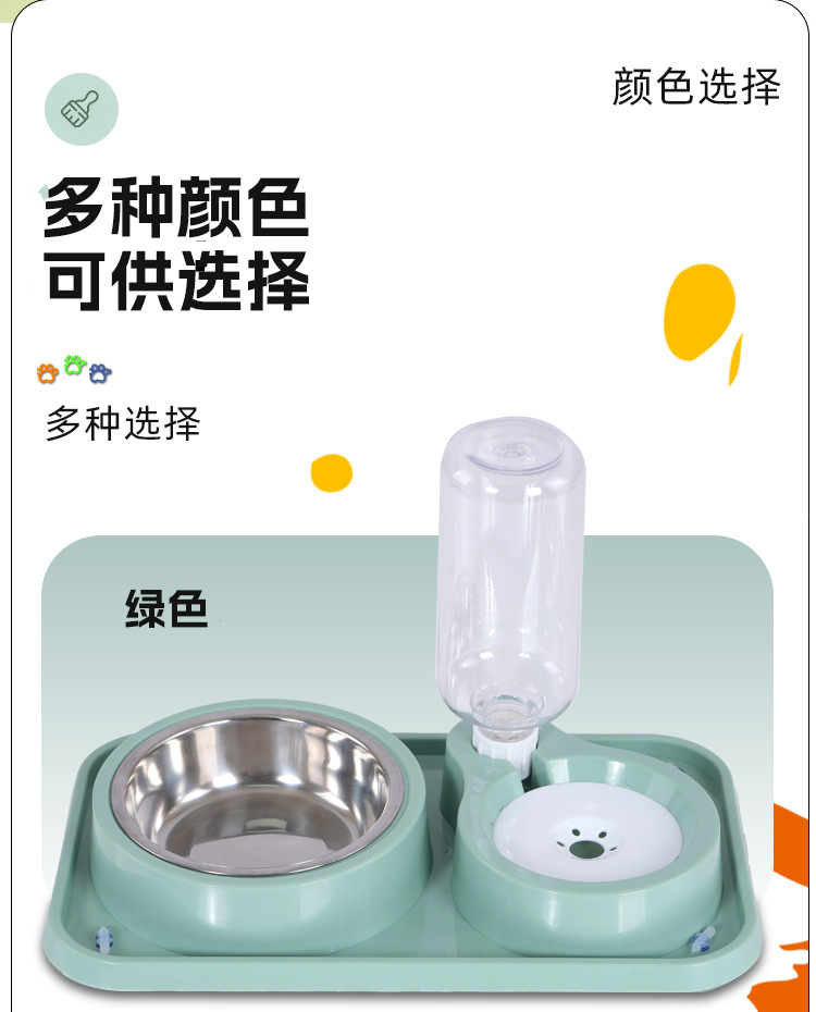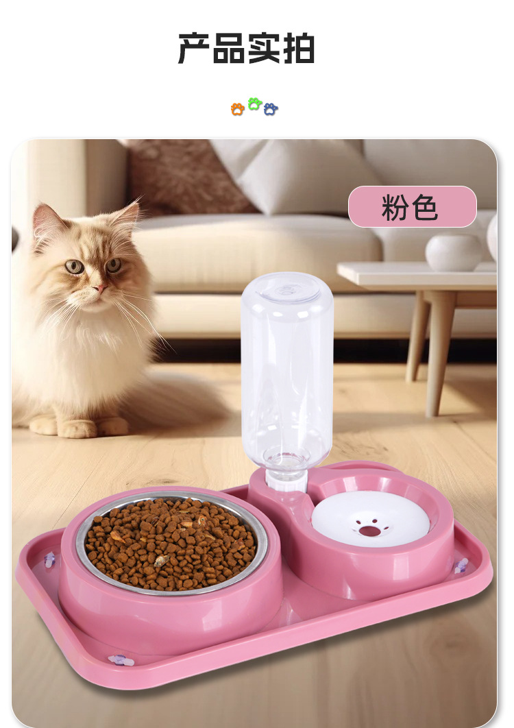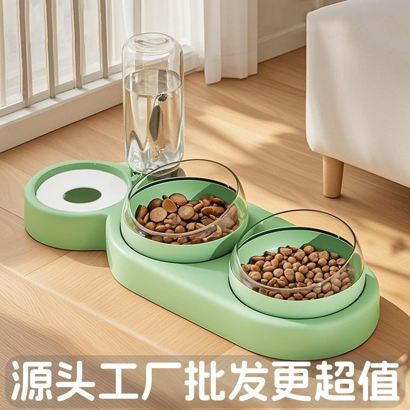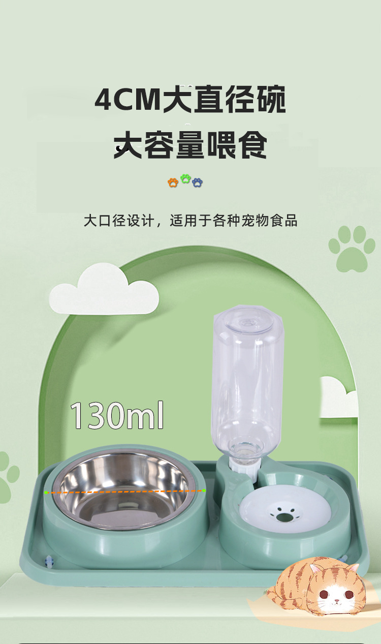猫碗二合一双碗自動飲用水猫糧犬糧盆ペット通用食盆保護首転倒防止給餌器