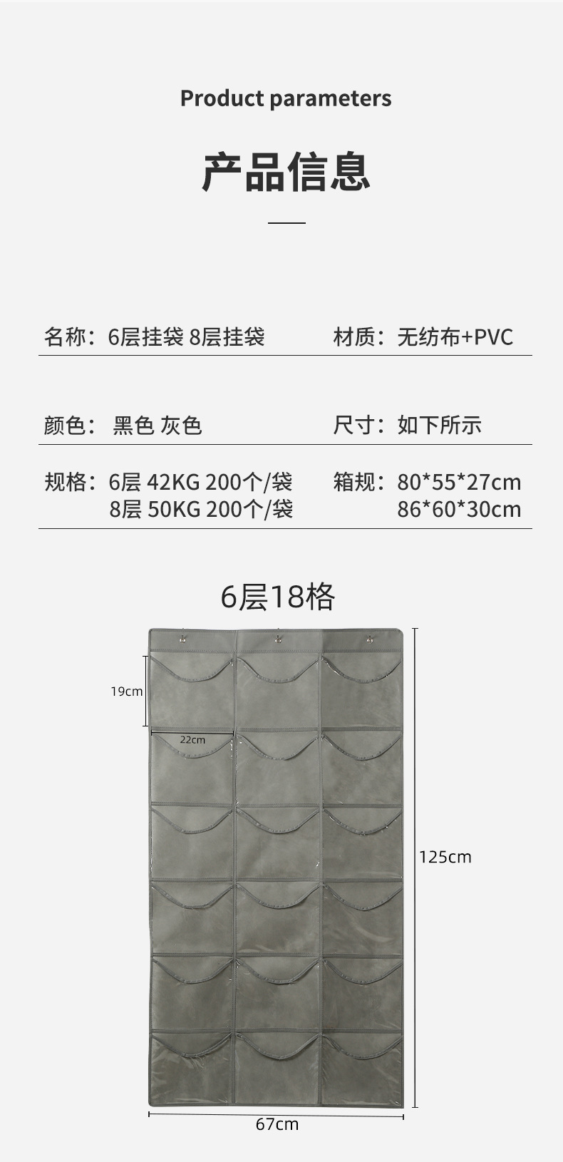 ドア後収納掛け袋家庭用野球帽厚手不織布収納袋多層格子吊り式収納神器