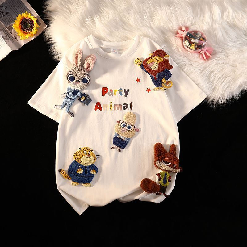 狂った動物城男女童装シャツ2024夏の新型大童ゆるい半袖上着