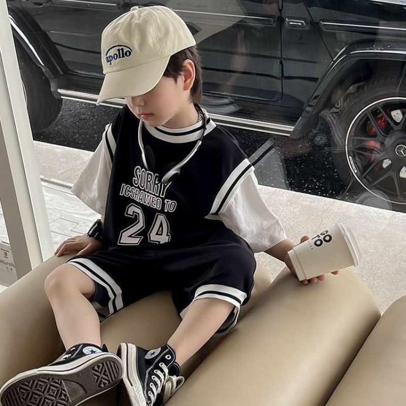 男児バスケットボール服セット夏2024新型ゆるい街児童夏服痞帅男宝運動2セット
