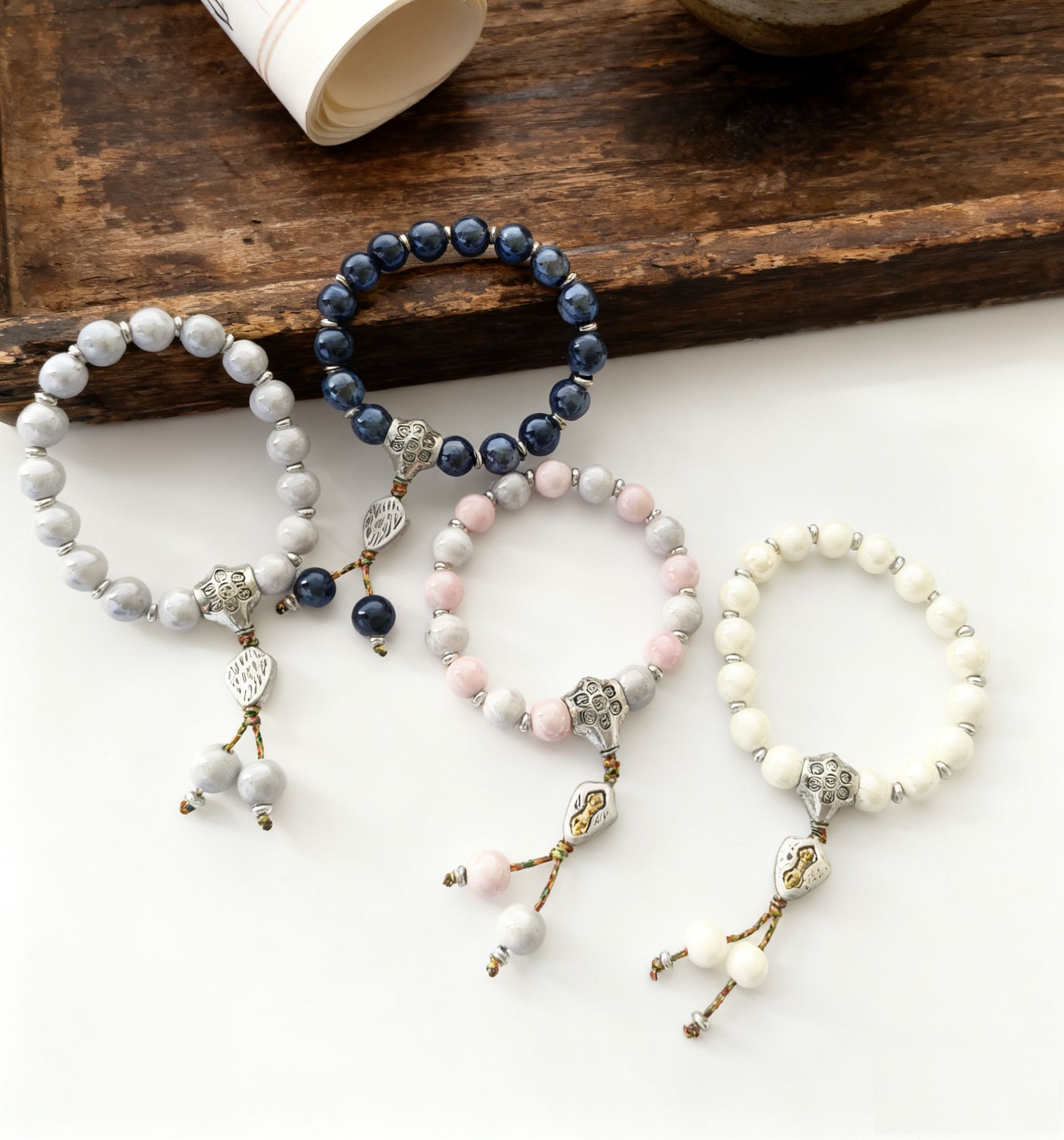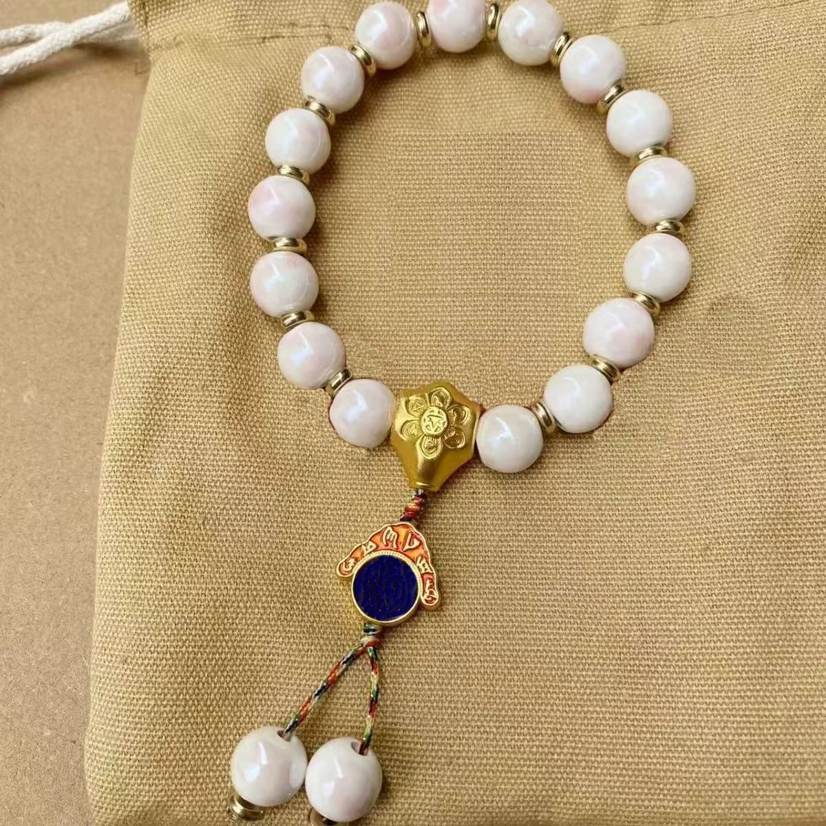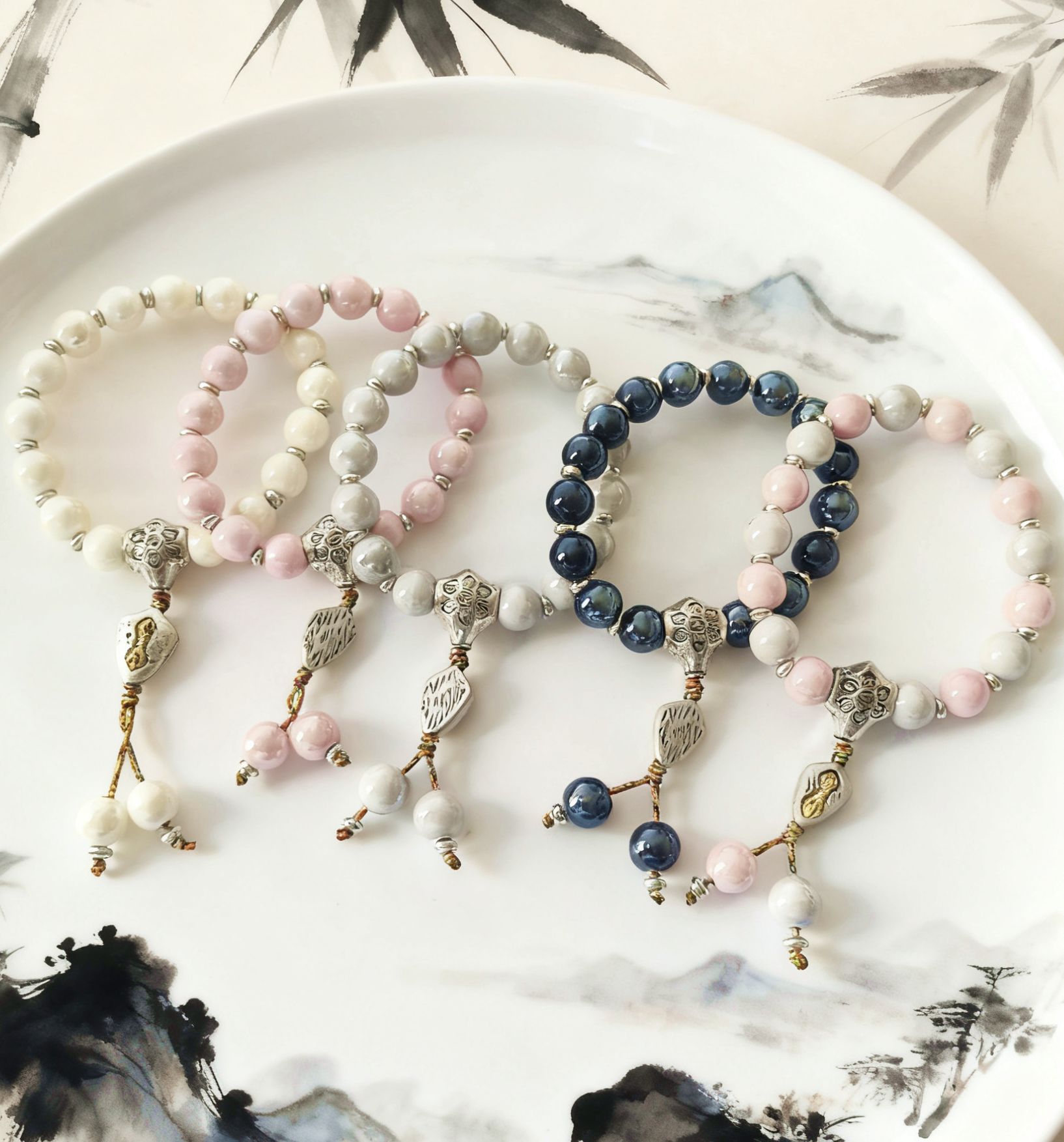 〔注意事项〕瓷珠均为手工烧制,不同批次瓷珠会有色差,个别珠边缘处会有微瑕,不以此为售后理由,完美主义者请慎拍,珠珠怕磕碰,请在运动 劳动时摘下哦,以免剧烈撞击损坏。