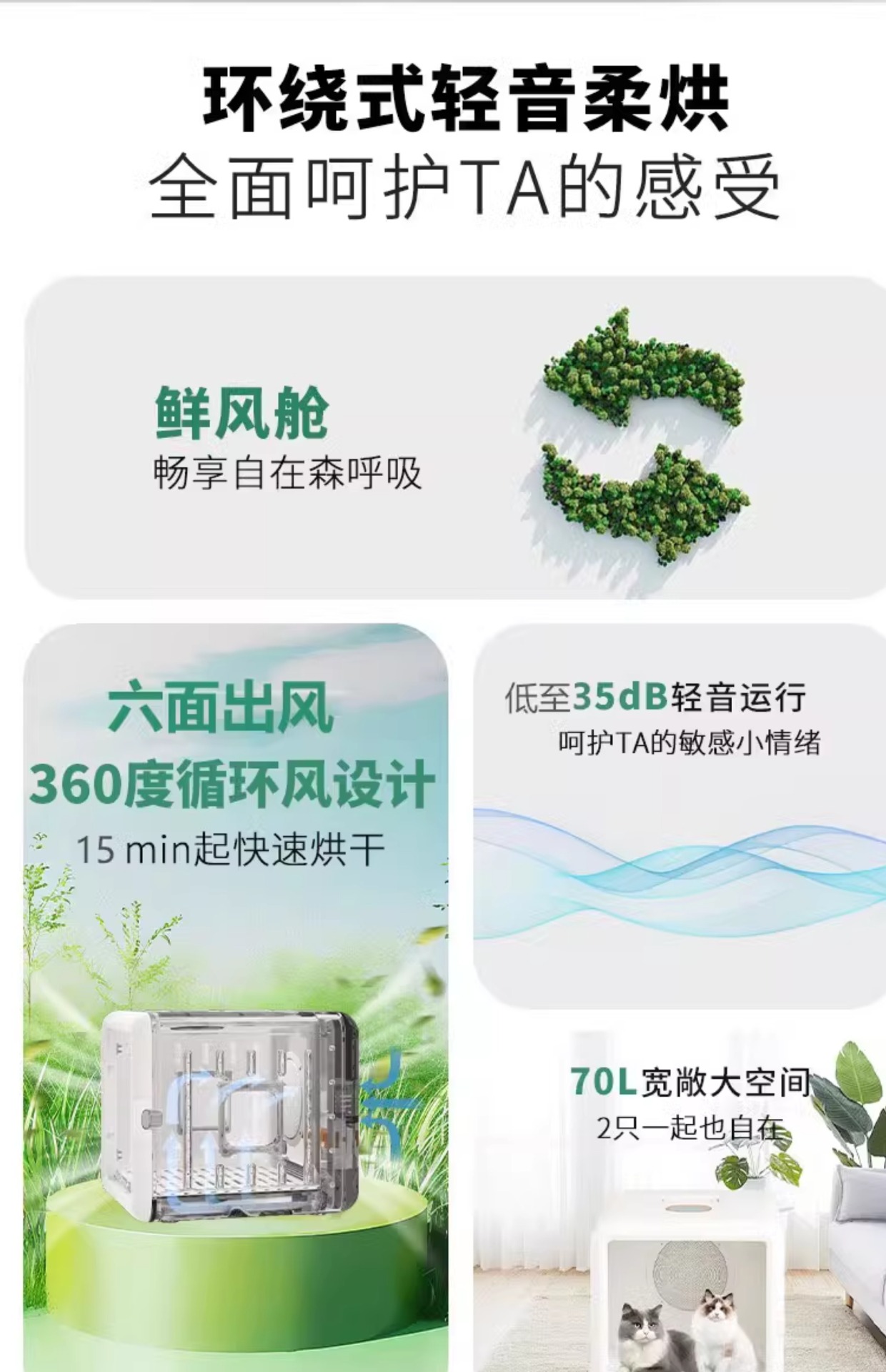 英和ペット乾燥箱猫犬入浴吹乾神器家庭用知能小型ペット吹毛乾燥機