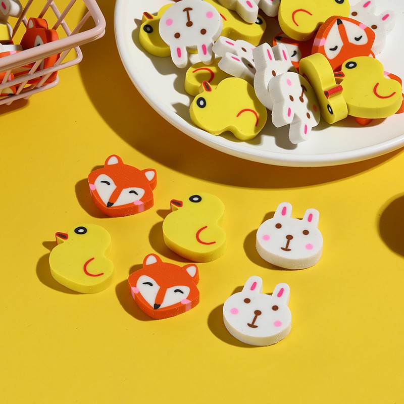 小さなキツネ、小さなアヒル、小さなウサギ、小さなイルカの形のかわいい漫画の消しゴム学生ギフトギフト卸売および小売